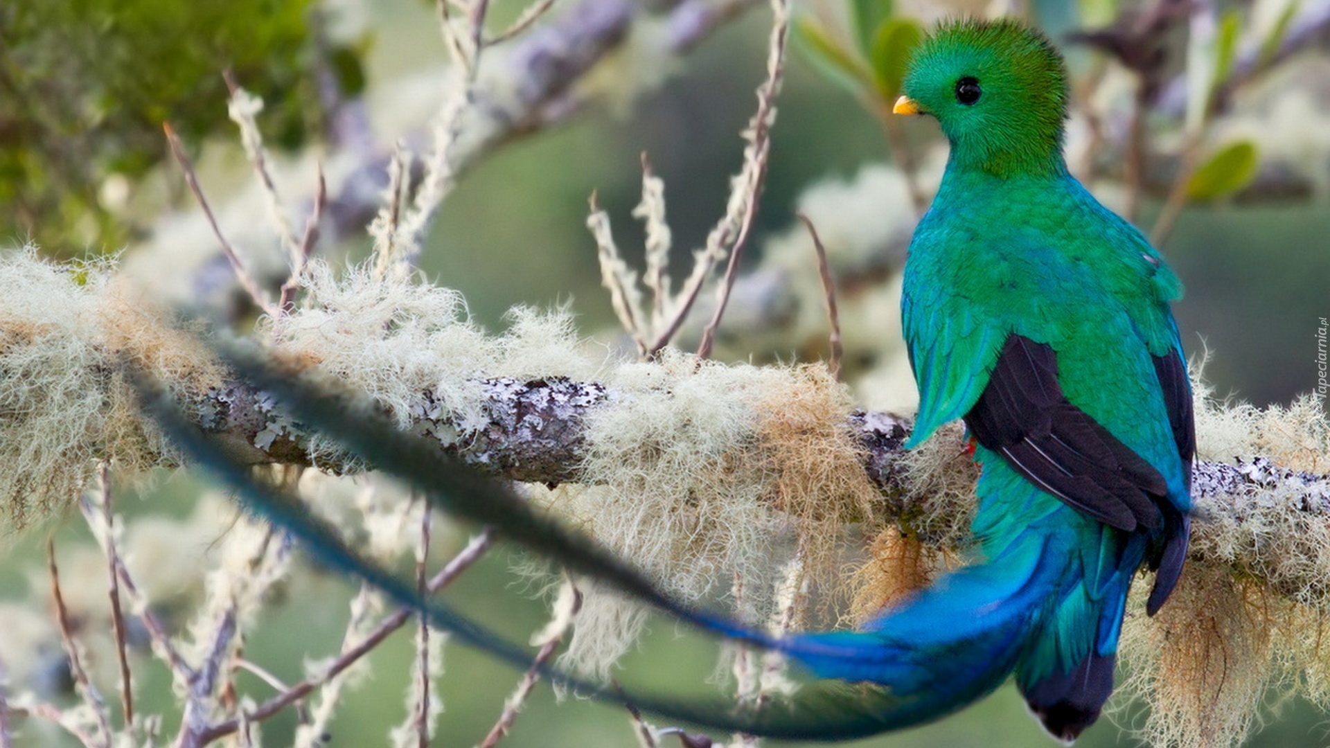 Edytor tapety: Ptak, Kwezal Herbowy, Oszronione, Gałęzie