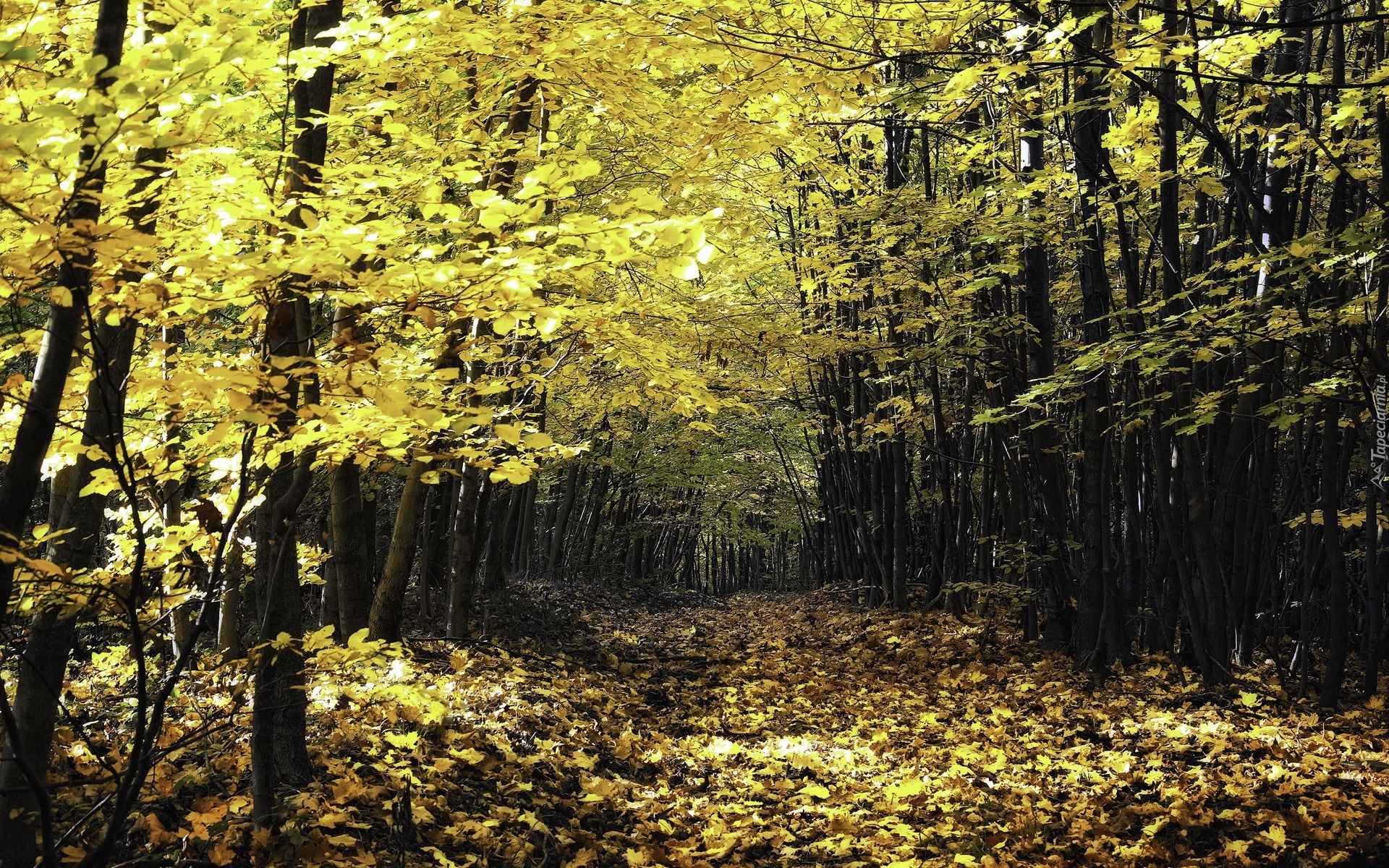 Edytor tapety: Las, Droga, Drzewa, Liście, Przebijające, Swiatło, Jesień
