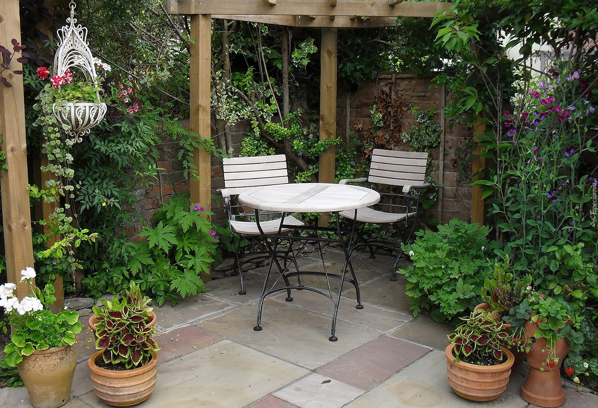 Edytor tapety: Ogródek, Stolik, Krzesła, Rośliny, Kwiaty
