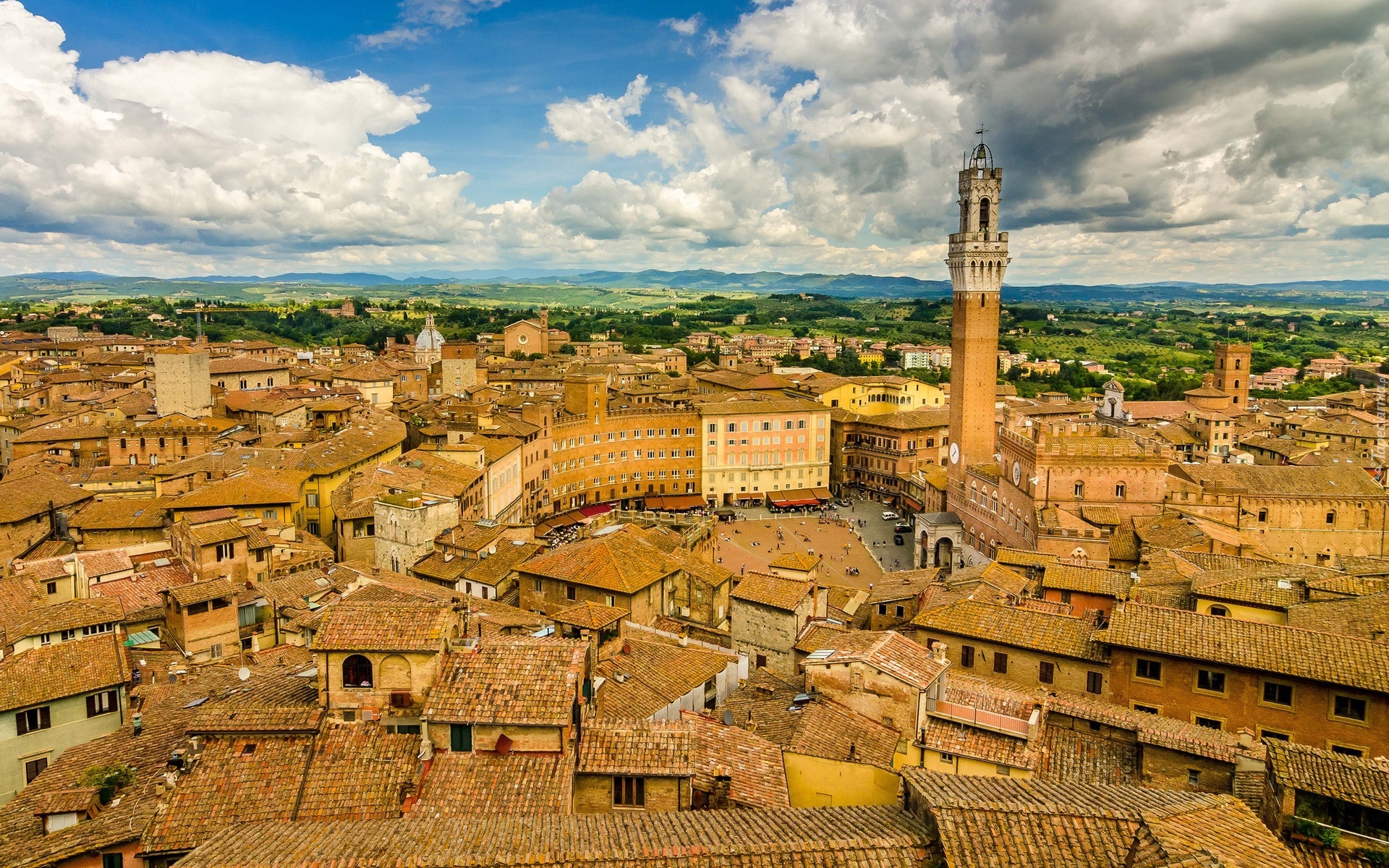 Edytor tapety: Wieża, Domy, Panorama, Miasta, Siena, Toskania, Włochy