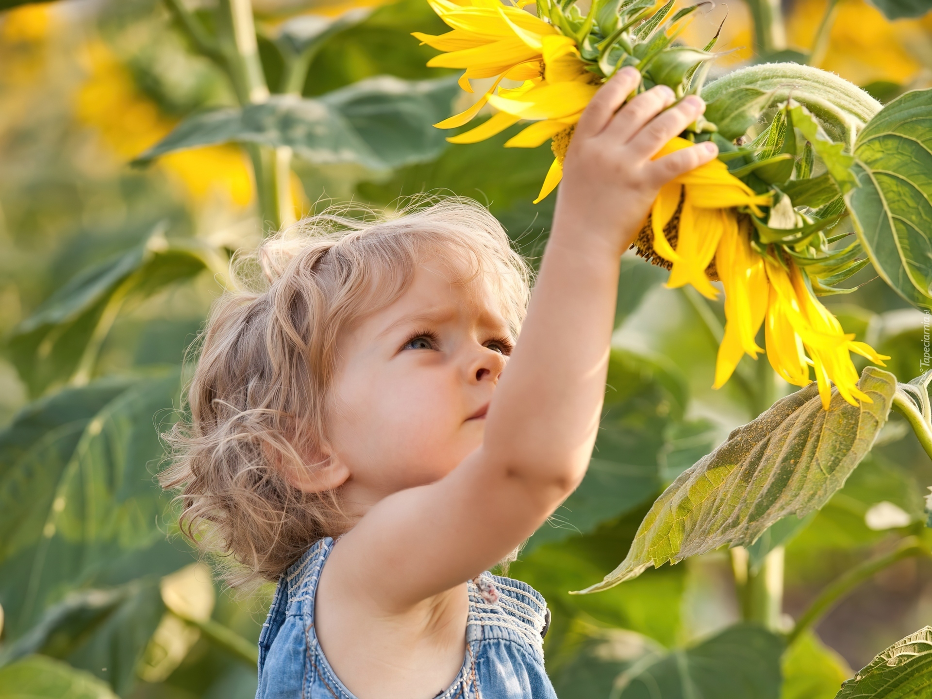 Edytor tapety: Mała, Dziewczynka, Ogród, Słoneczniki