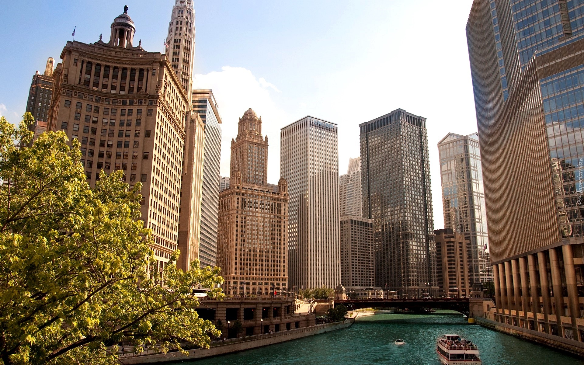 Edytor tapety: Wieżowce, Rzeka, Chicago, USA