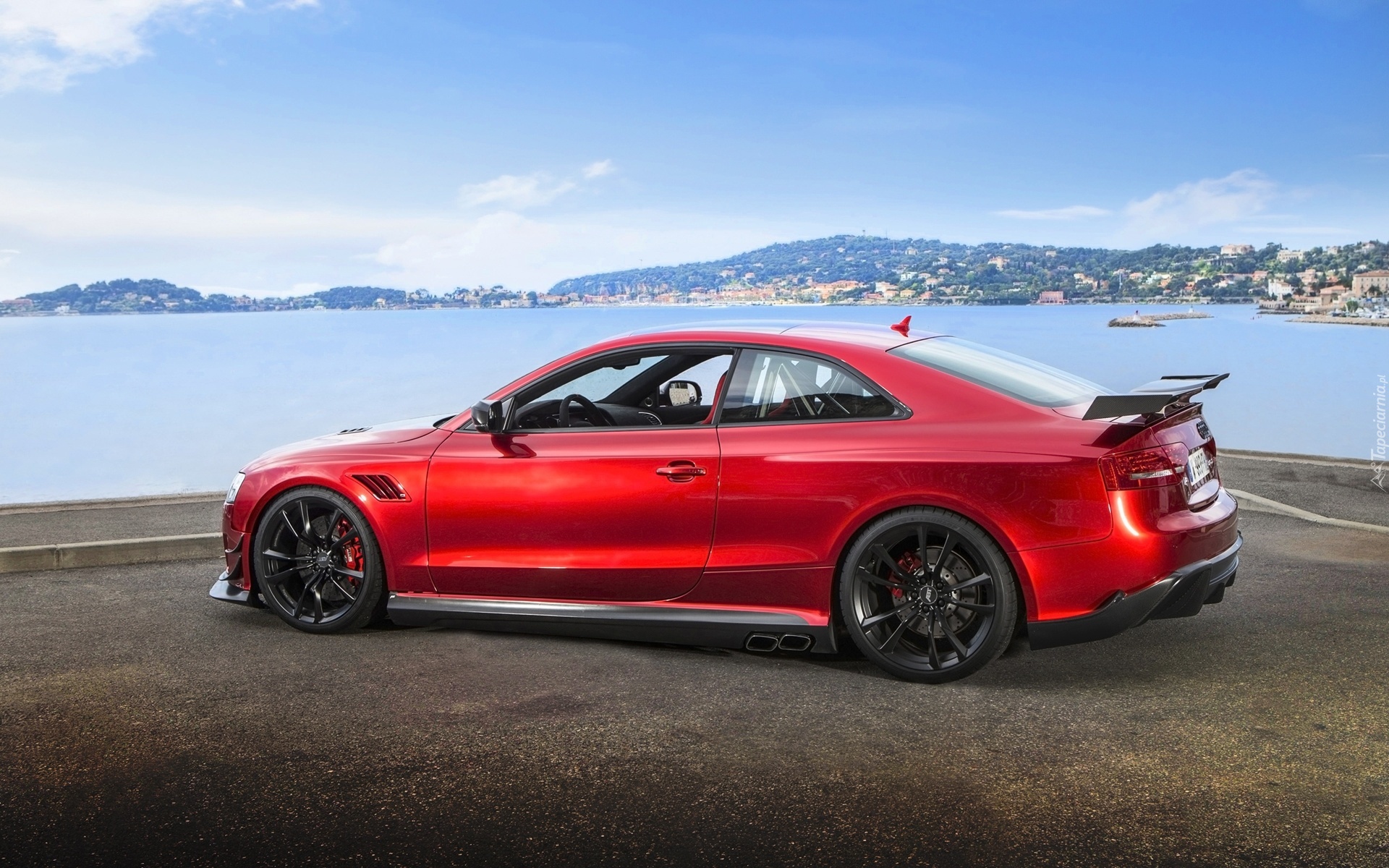 Edytor tapety: Jezioro, Brzeg, Czerwone, Audi