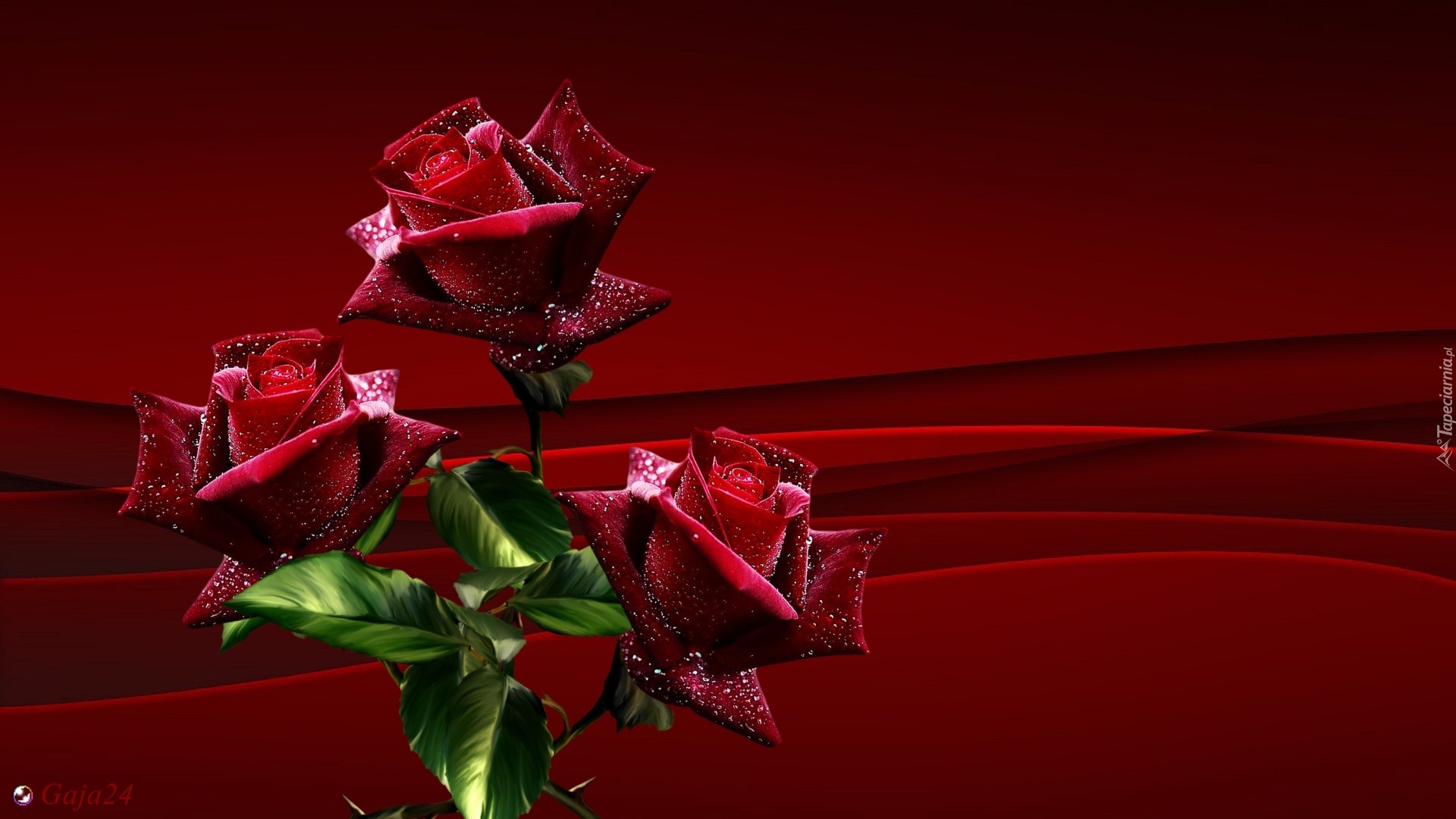 Edytor tapety: Czerwone, Róże, Krople