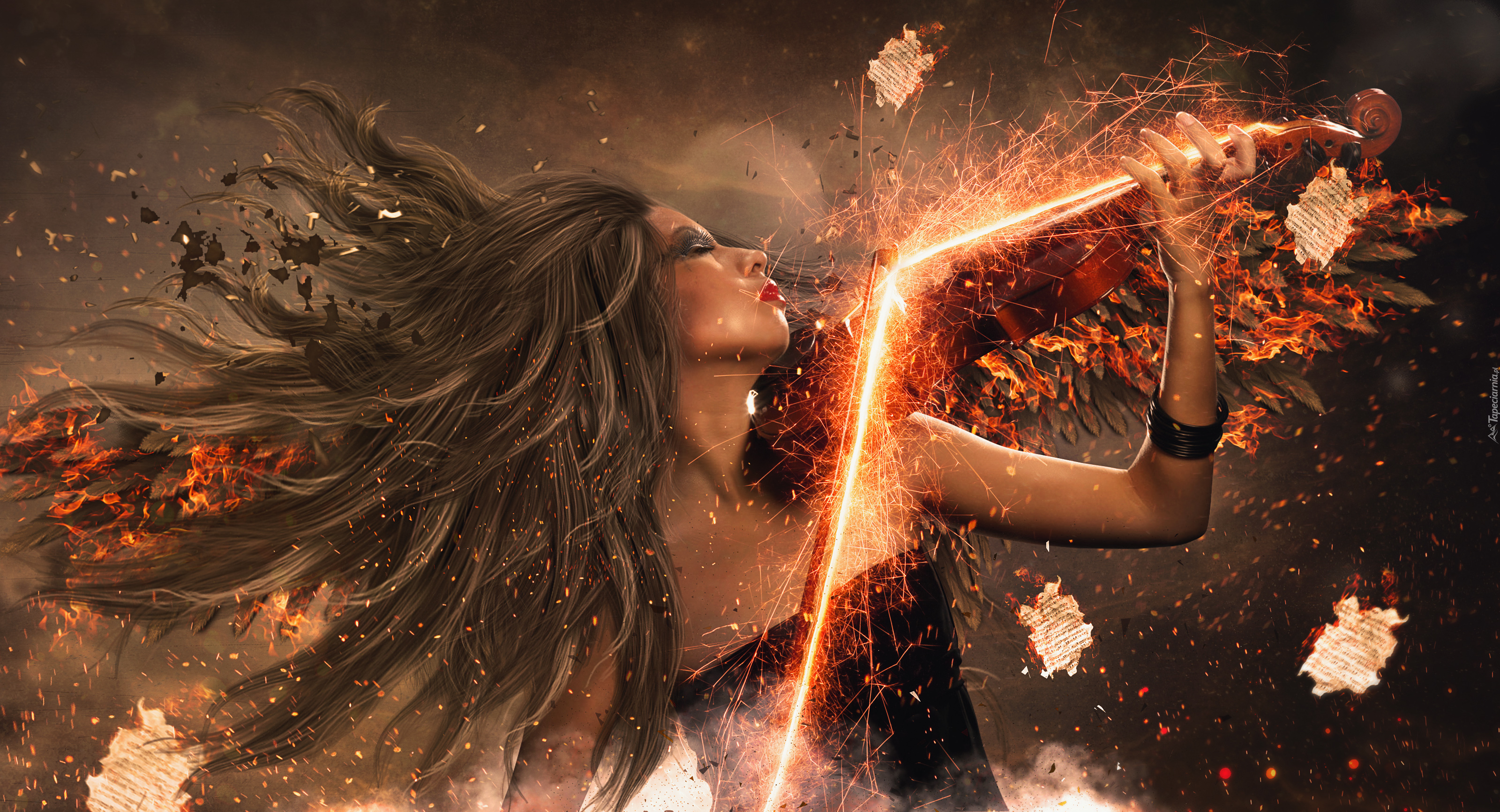 Edytor tapety: Dziewczyna, Skrzypce, Fotomanipulacja