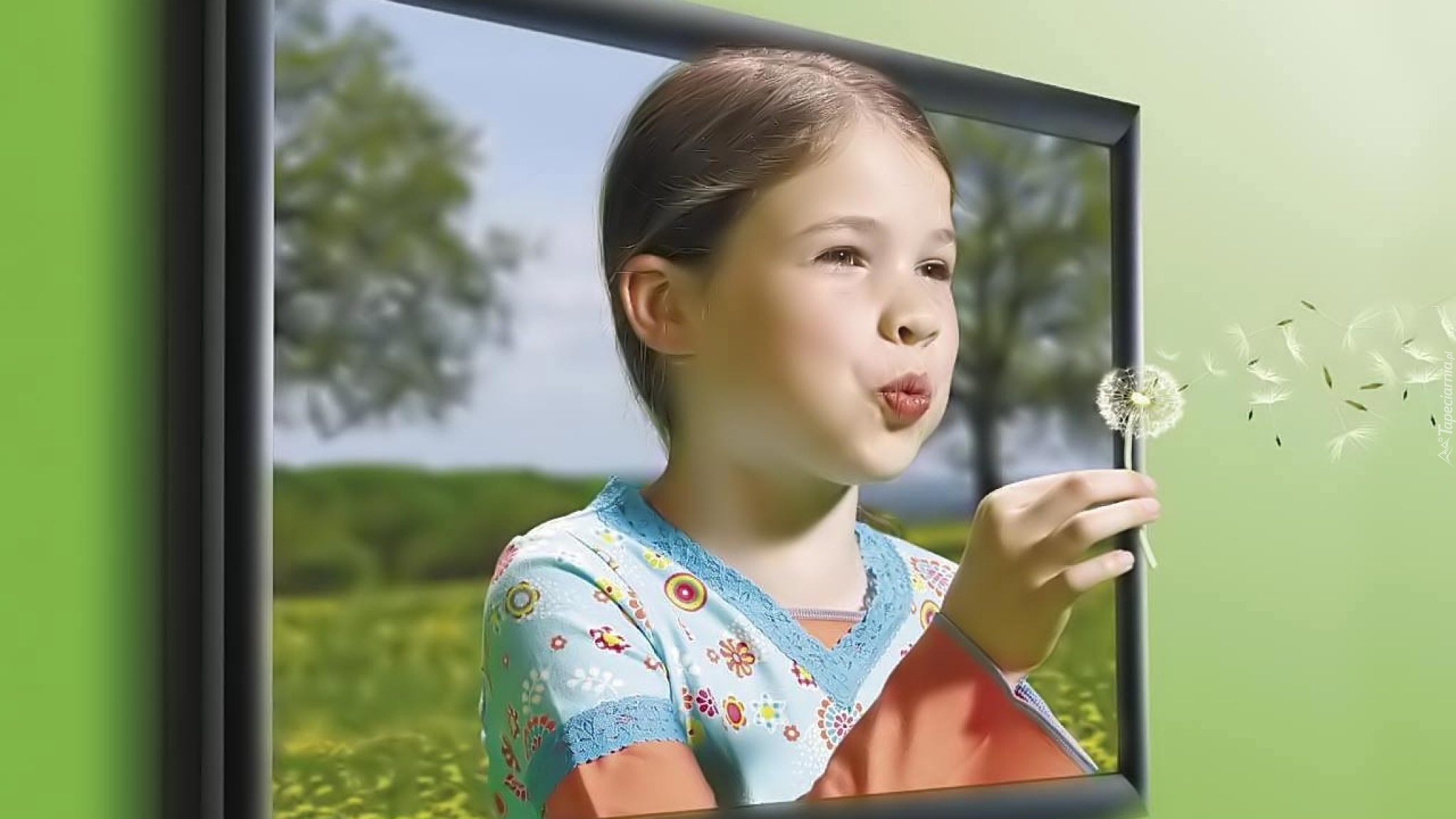 Edytor tapety: Dziewczynka, Telewizor, Mniszek, Mlecz
