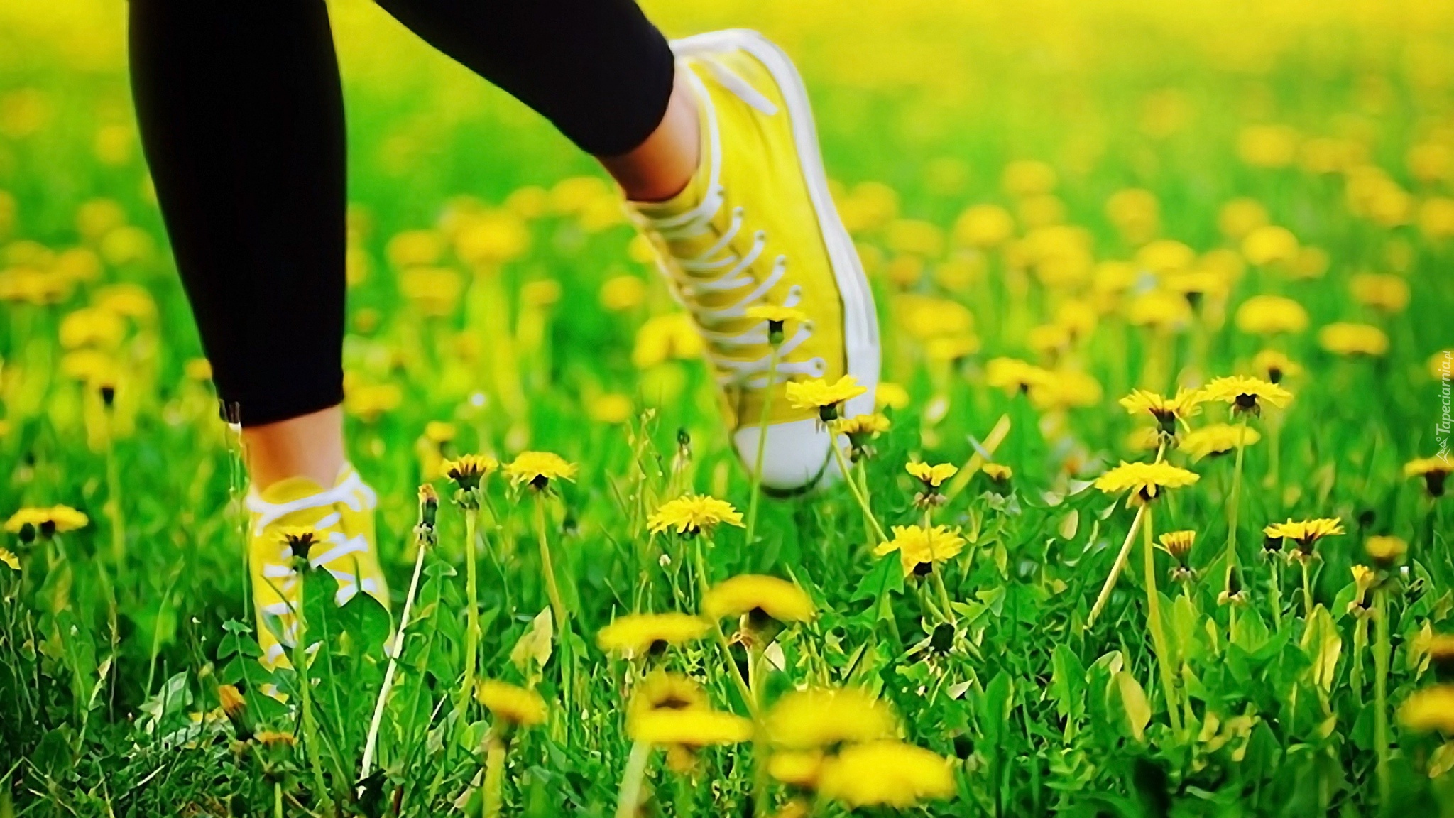 Edytor tapety: Łąka, Buty, Sportowe, Mniszek, Mlecz, Nogi