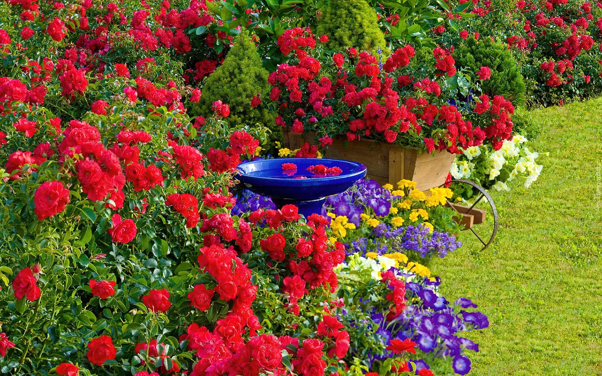 Edytor tapety: Ogród, Ogródek, Kwiaty, Ozdoby