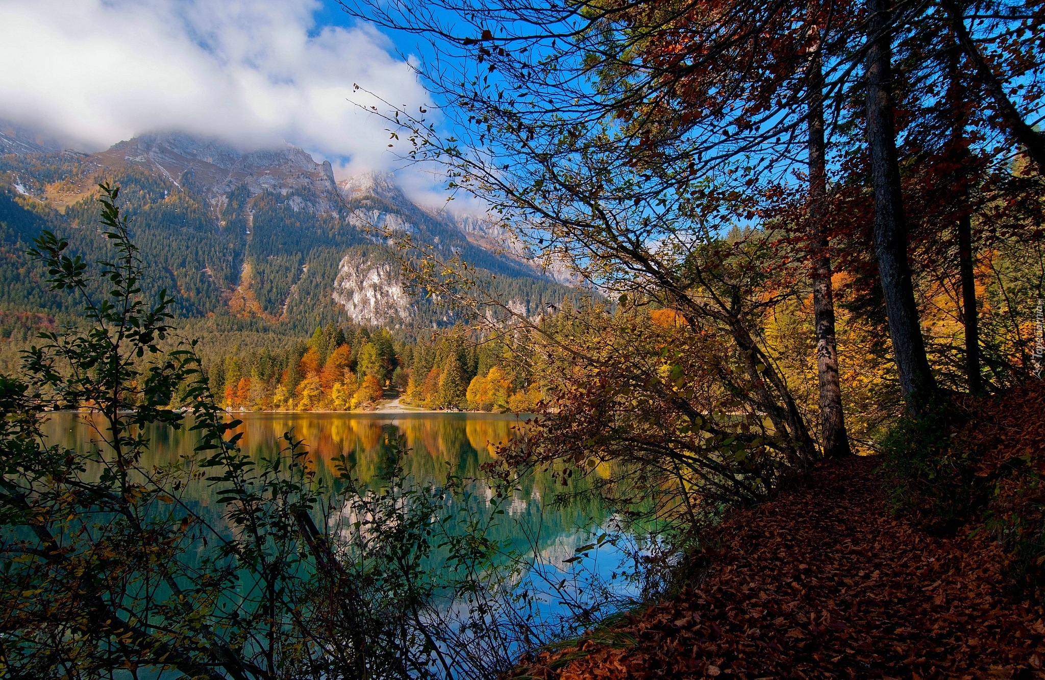 Edytor tapety: Góry, Lasy, Jezioro Tovel, Włochy, Jesień