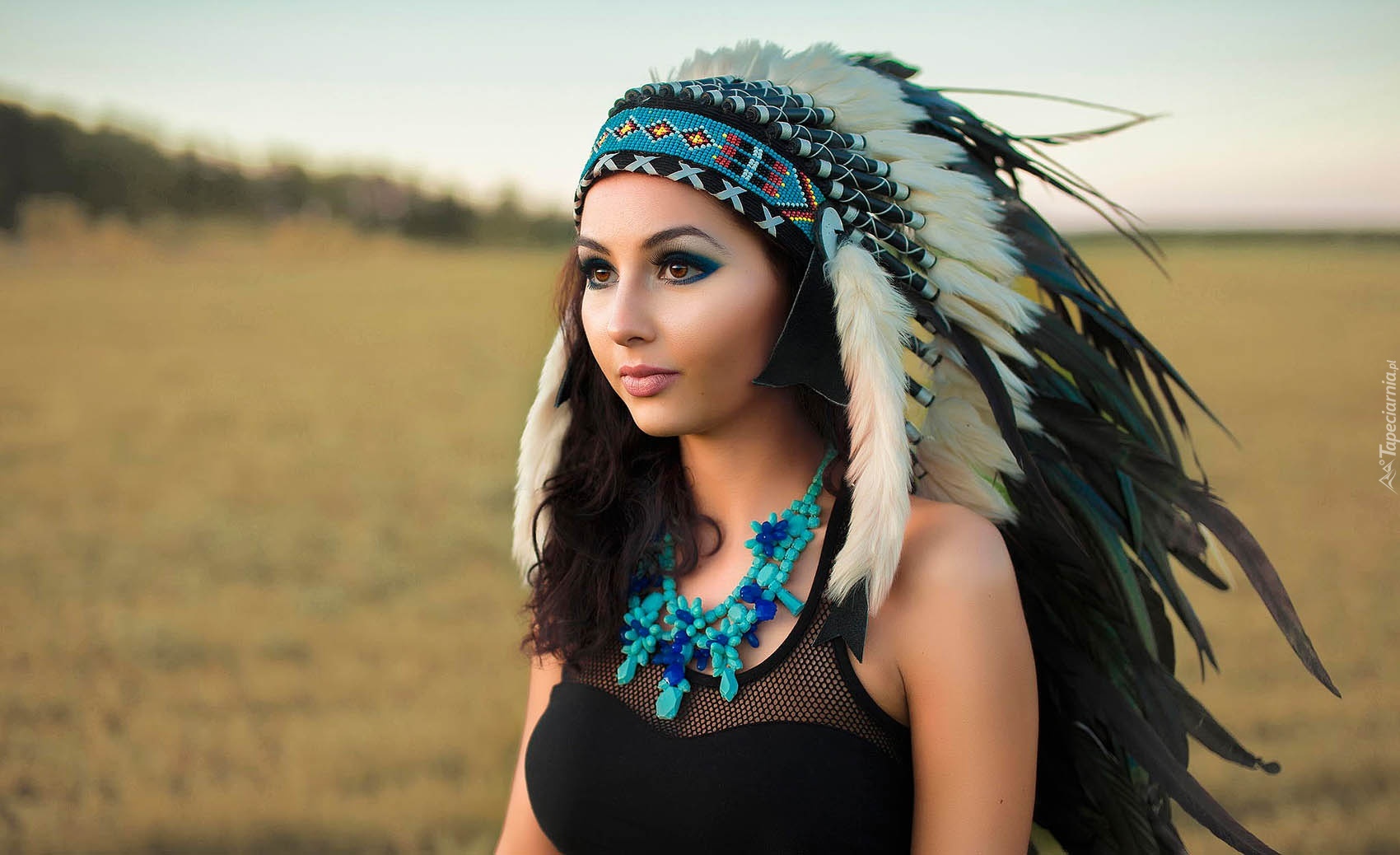 Edytor tapety: Brunetka, Naszyjnik, Pióropusz