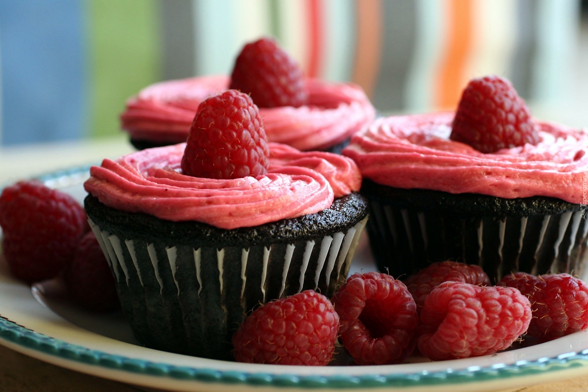 Edytor tapety: Babeczki, Czekoladowe, Maliny, Rozmycie