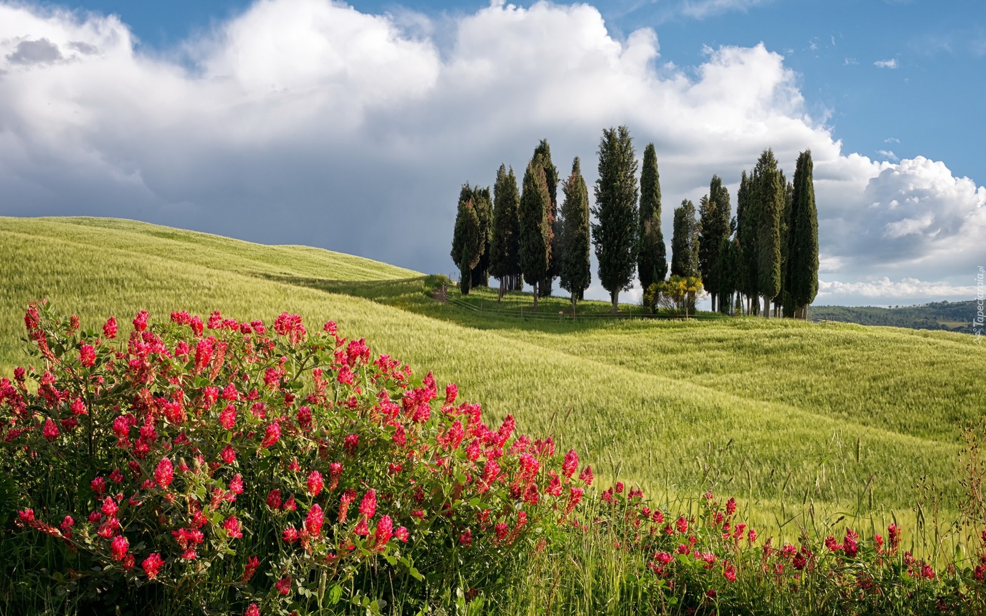 Edytor tapety: Góry, Łąki, Kwiaty, Drzewa, Toskania, Włochy