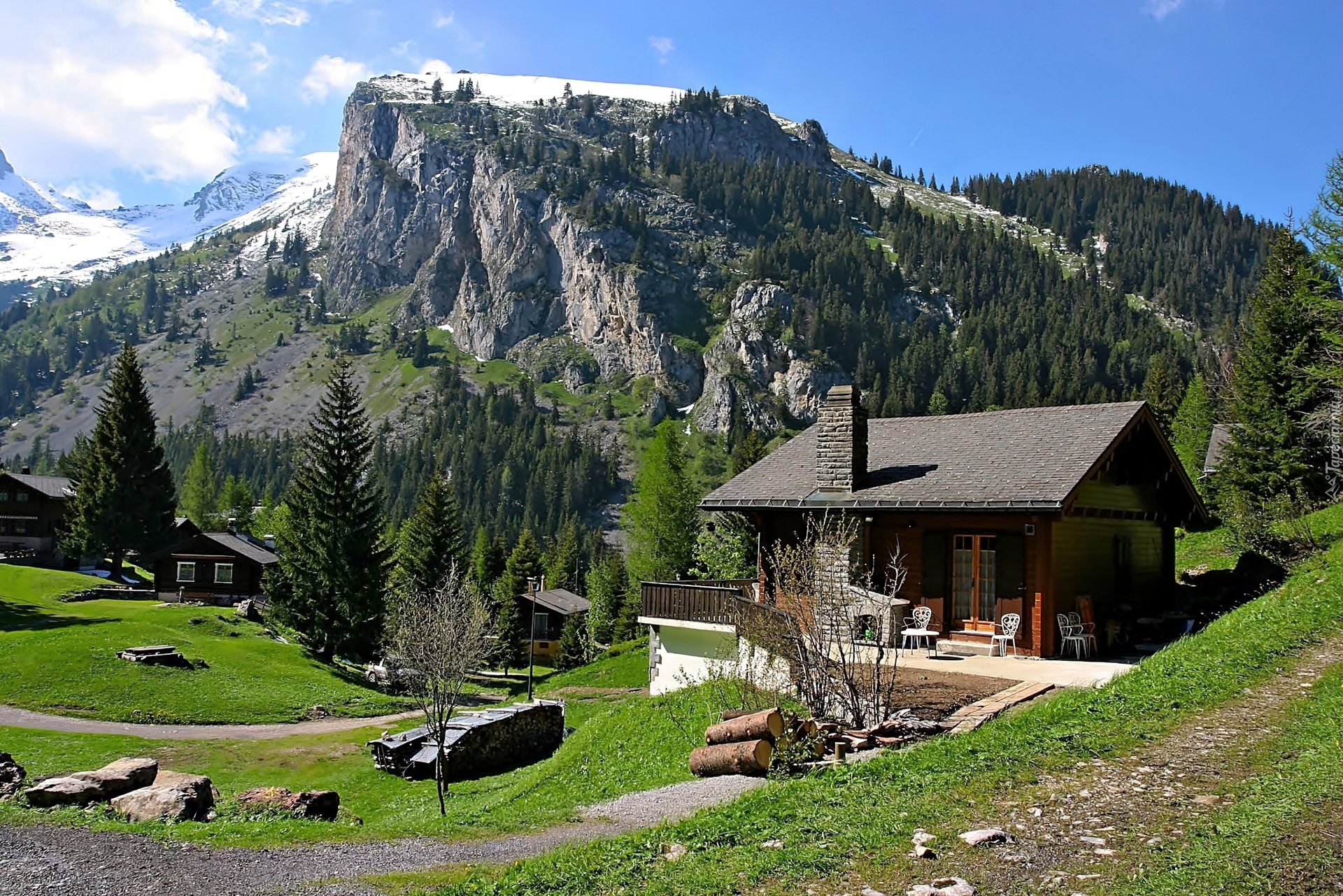 Edytor tapety: Góry, Alpy, Lasy, Dolina, Domy