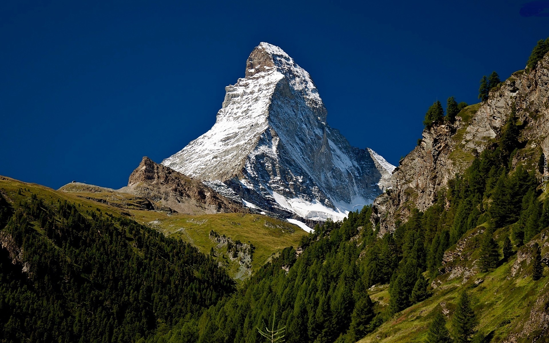 Edytor tapety: Góry, Alpy, Szczyt, Matternhorn, Lasy, Łąki