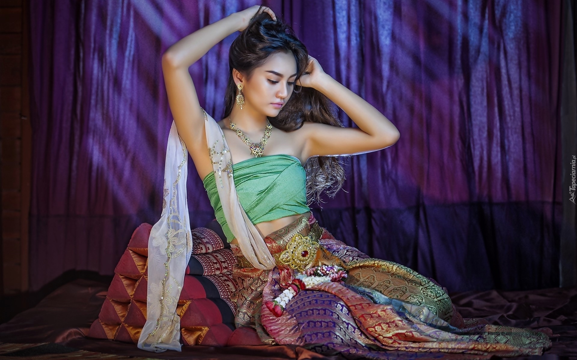 Edytor tapety: Kobieta, Azjatka, Rozpuszczone, Włosy, Orientalny, Strój