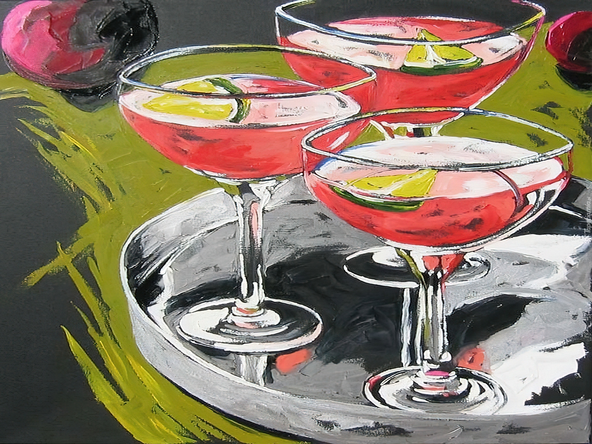 Edytor tapety: Drinki, kieliszki, taca