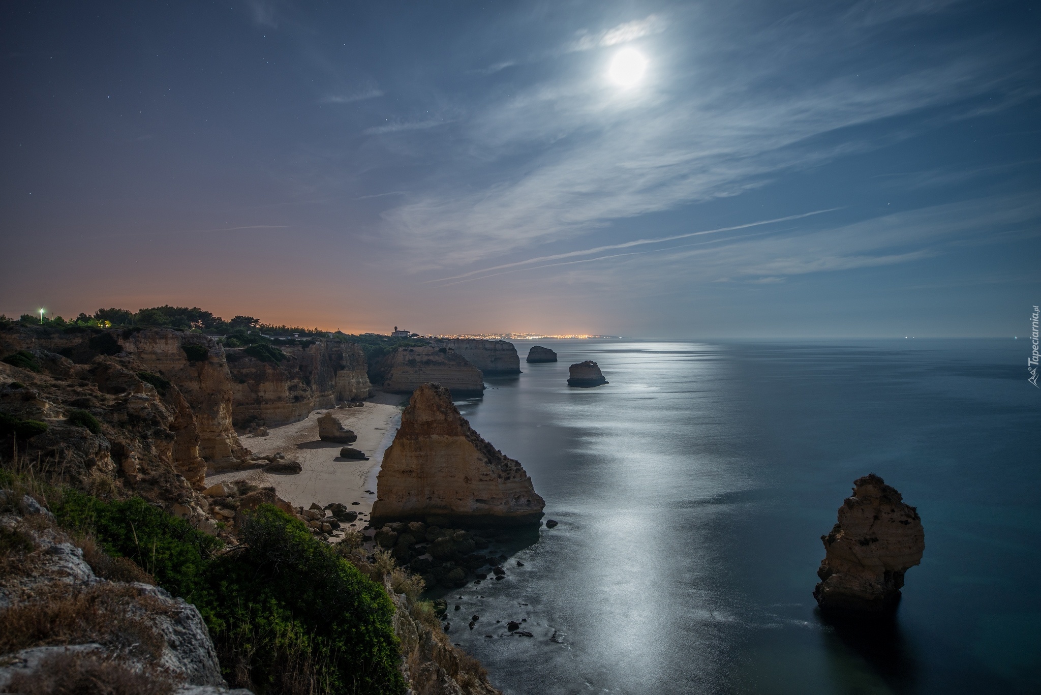 Edytor tapety: Morze, Noc, Księżyc, Odbicie