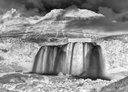 Edytor tapety: Wodospad, Góra, Mgła, Islandia