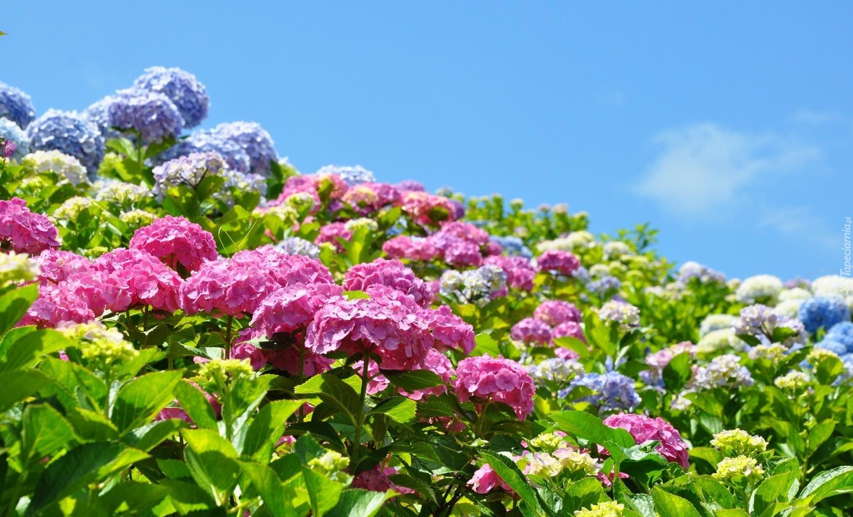 Edytor tapety: Kwiaty, Hortensje, Niebo