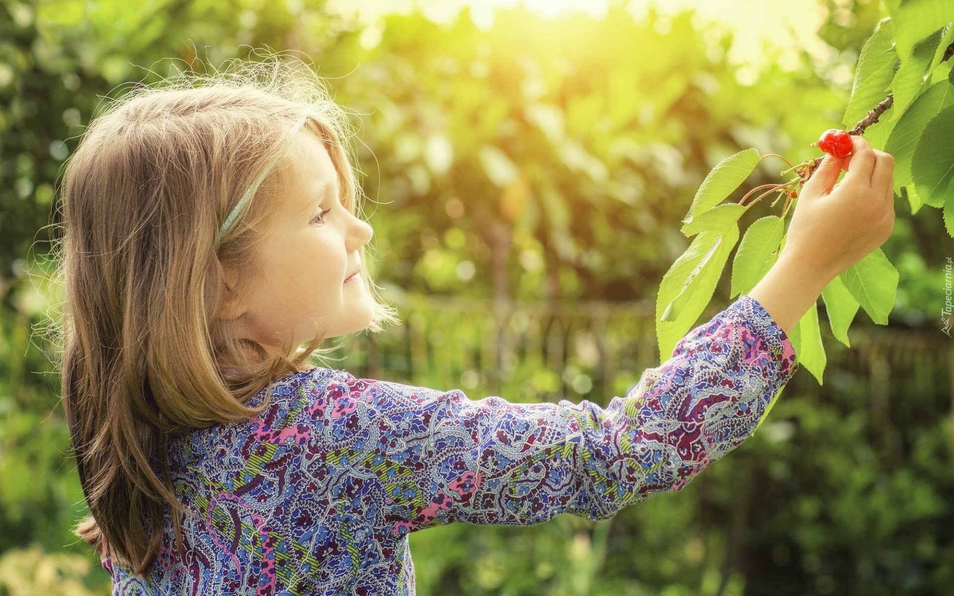 Edytor tapety: Dziewczynka, Ogród, Wiśnie