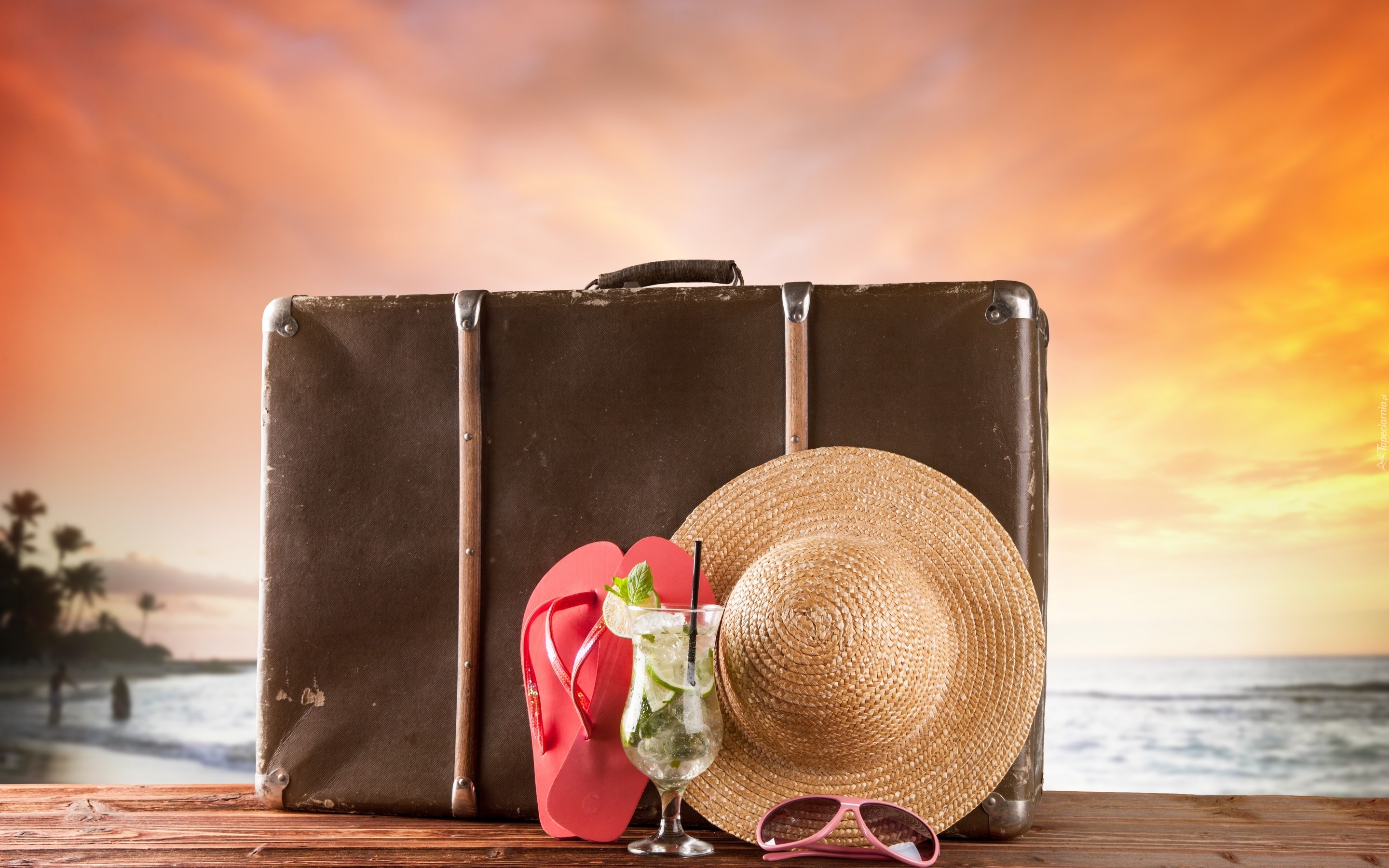 Edytor tapety: Lato, Morze, Walizka, Kapelusz, Wakacje