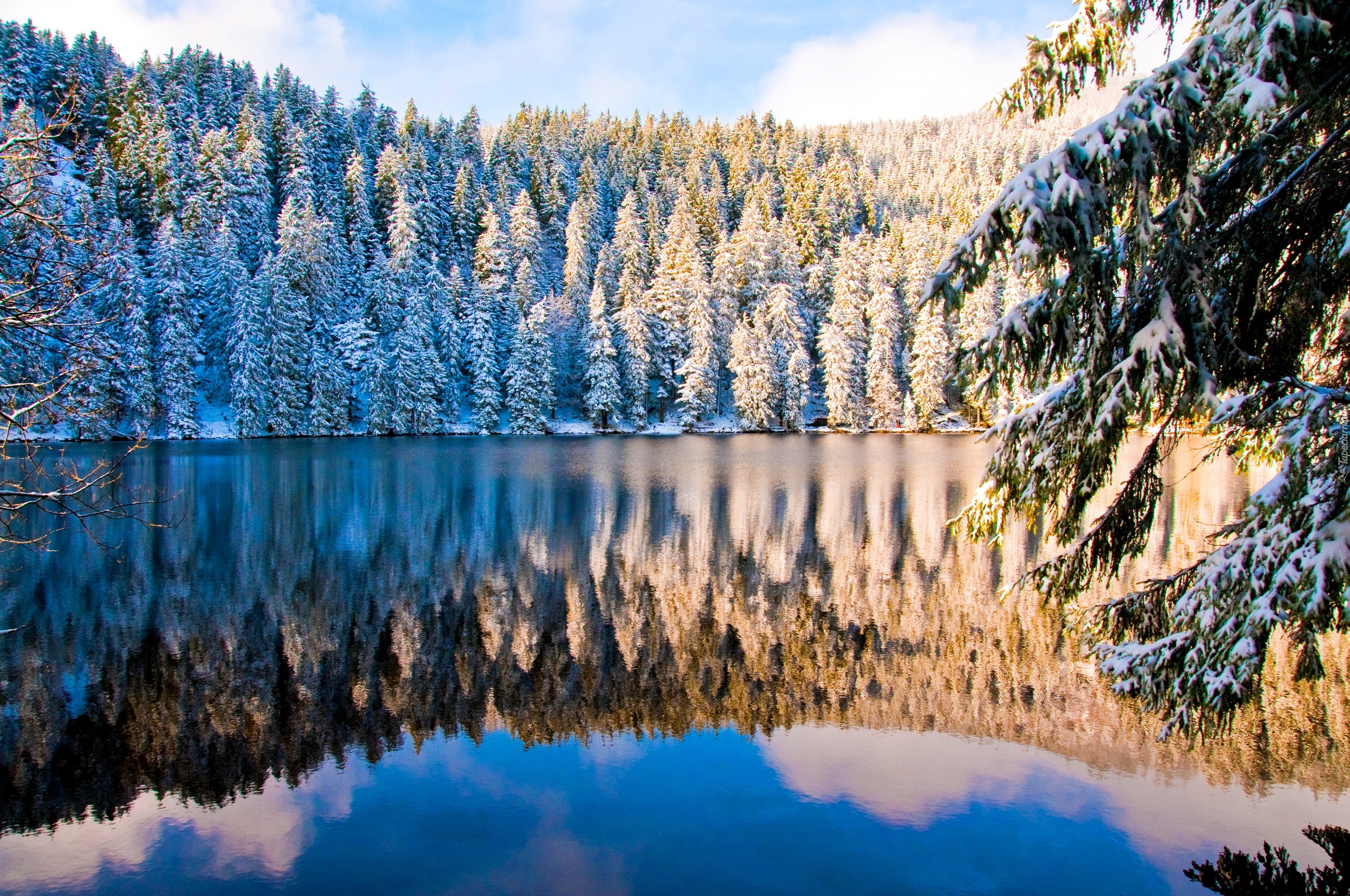 Edytor tapety: Zima, Lasy, Jezioro, Odbicie