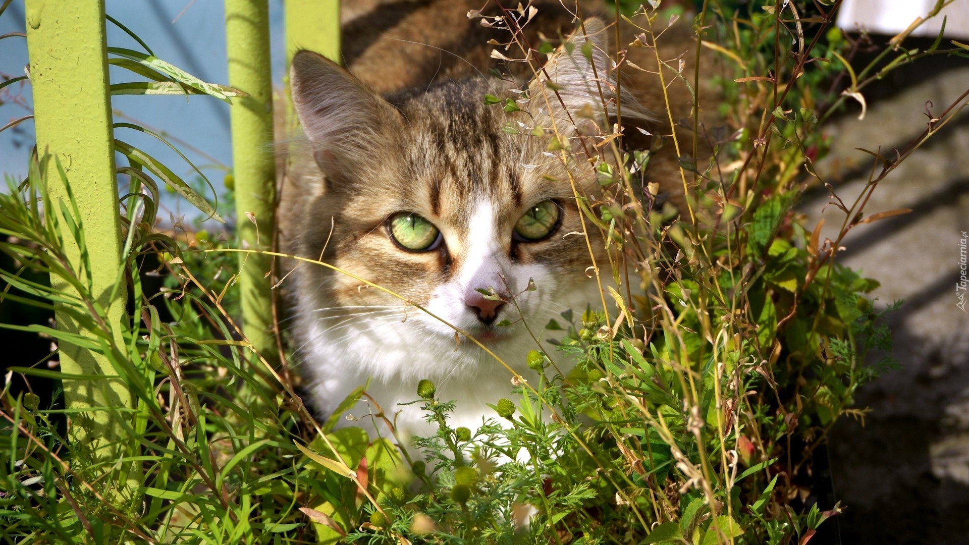 Edytor tapety: Kot, Zielone, Oczy, Rośliny
