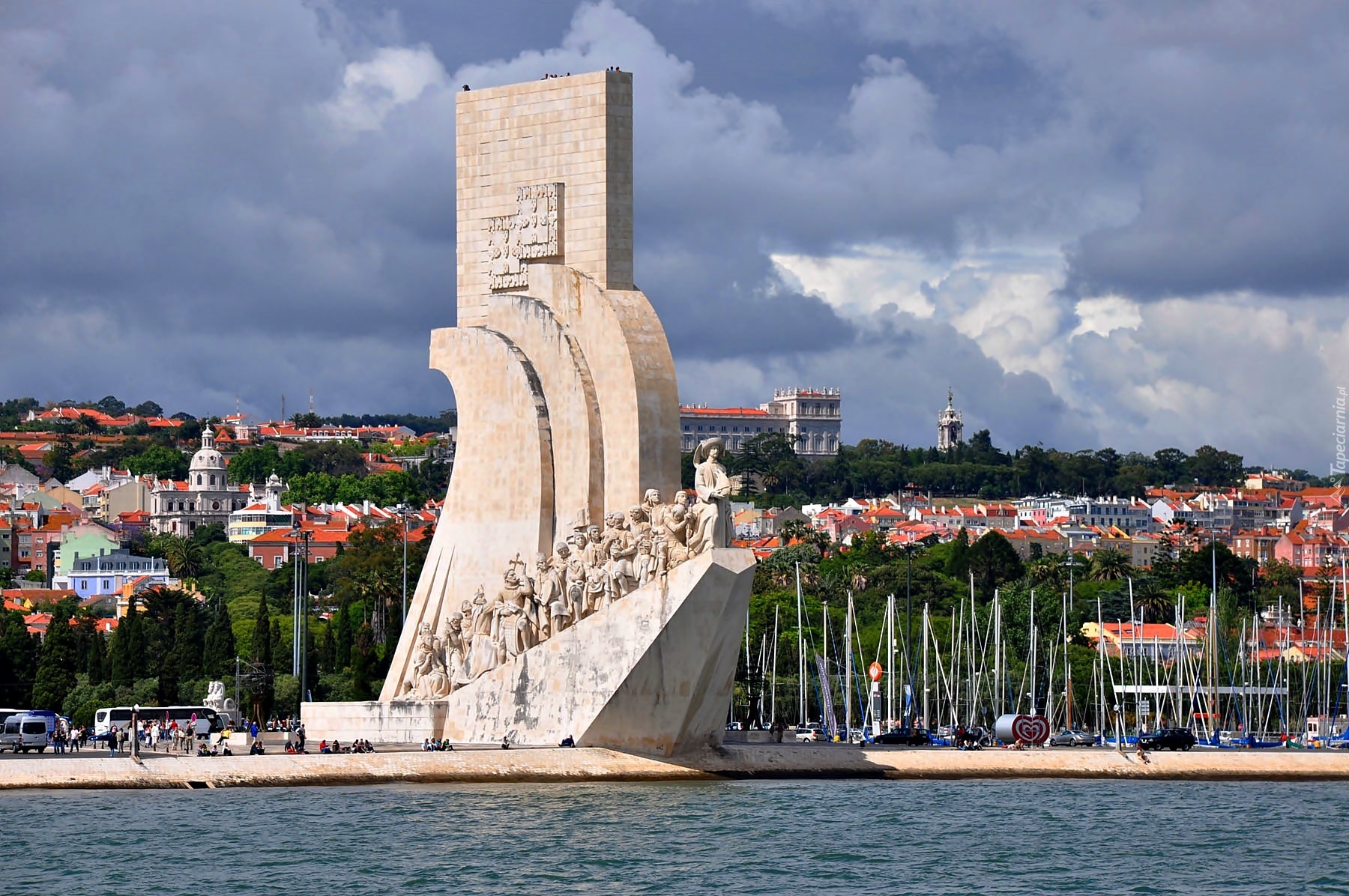 Edytor tapety: Portugalia, Lizbona, Morze, Wybrzeże, Pomnik, Odkrywców, Marina, Łodzie