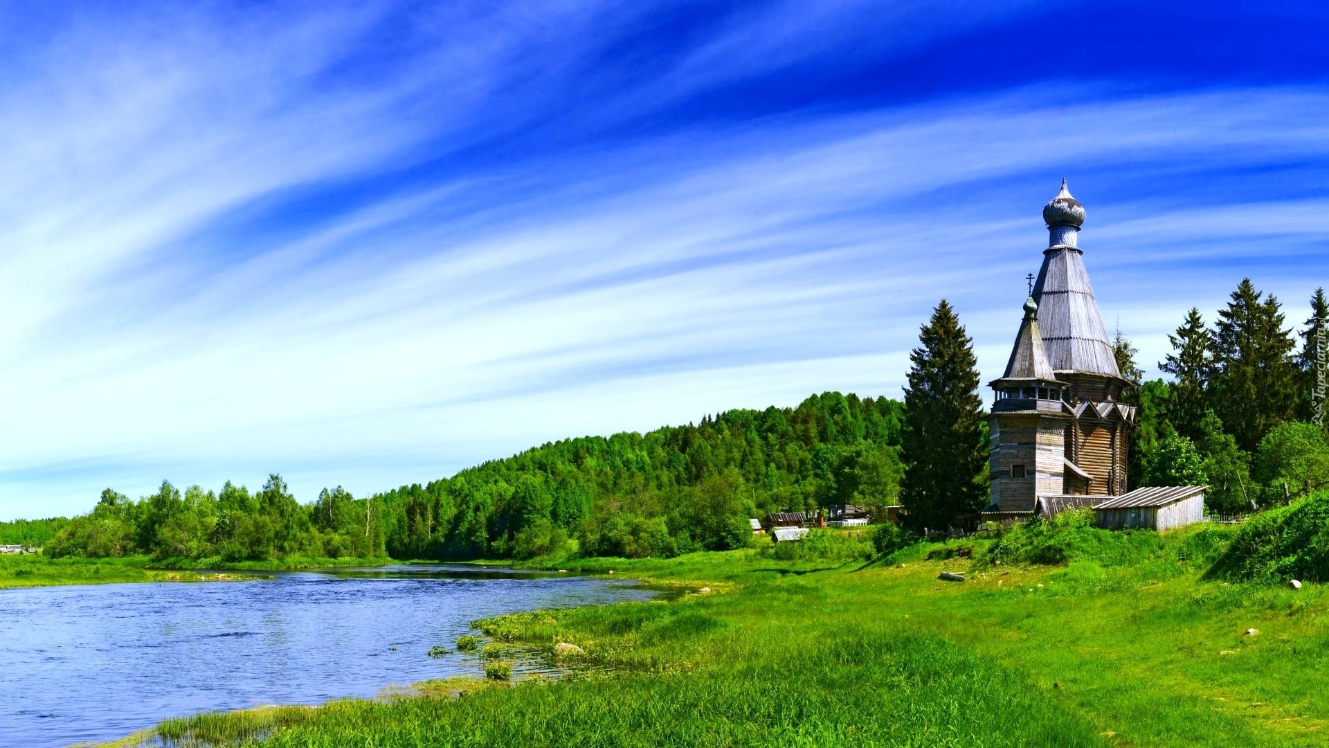Edytor tapety: Kościółek, Las, Rzeka