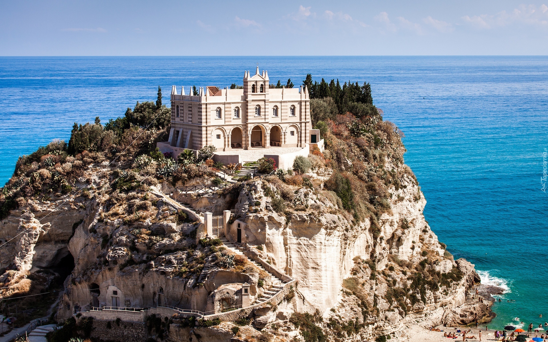Edytor tapety: Kościół, Santa Maria, Wzniesienie, Morze, Tropea, Włochy