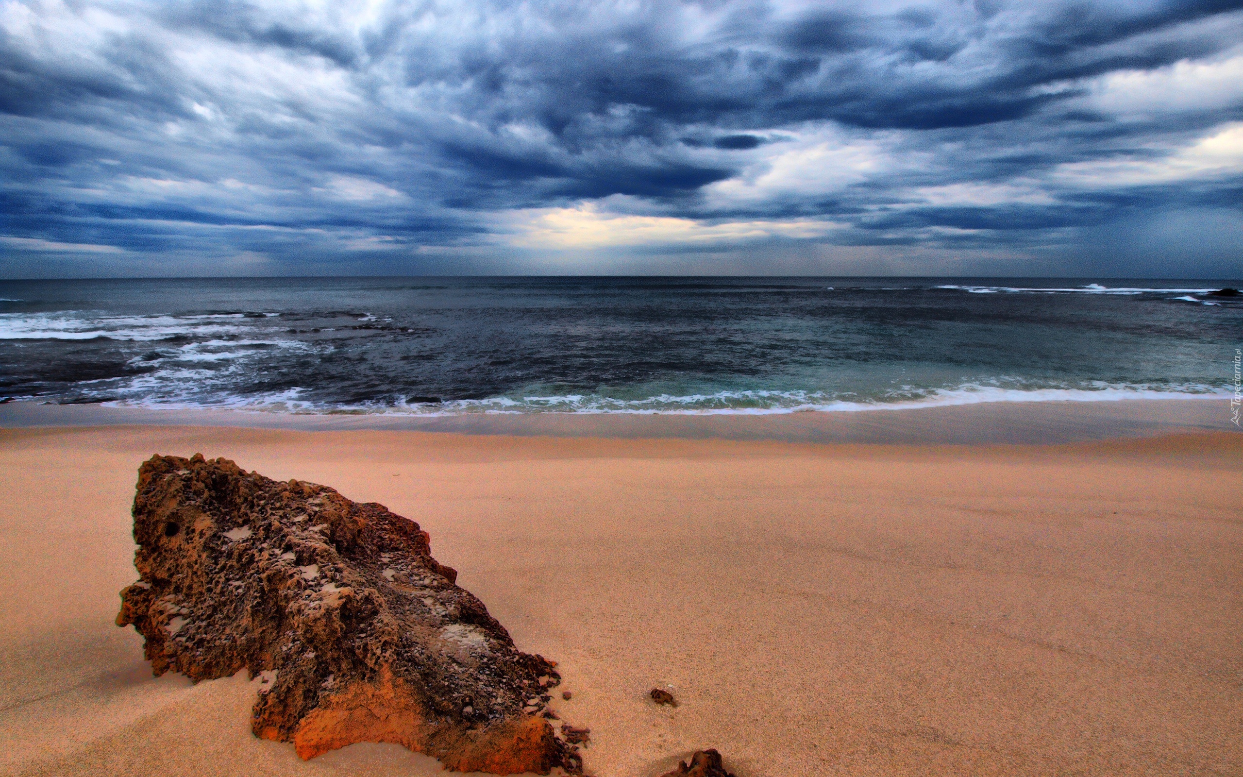 Edytor tapety: Plaża, Skała, Morze, Fale, Chmury