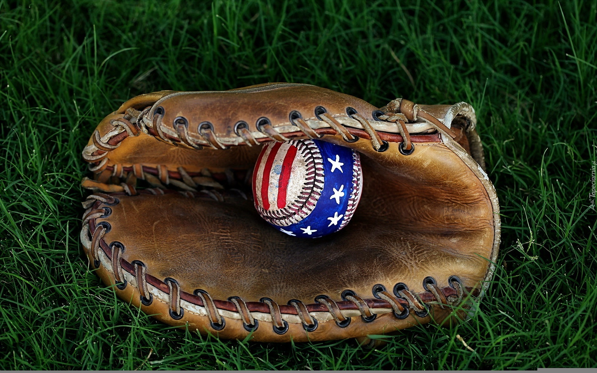 Edytor tapety: Rękawica, Piłka, Trawa, Baseball