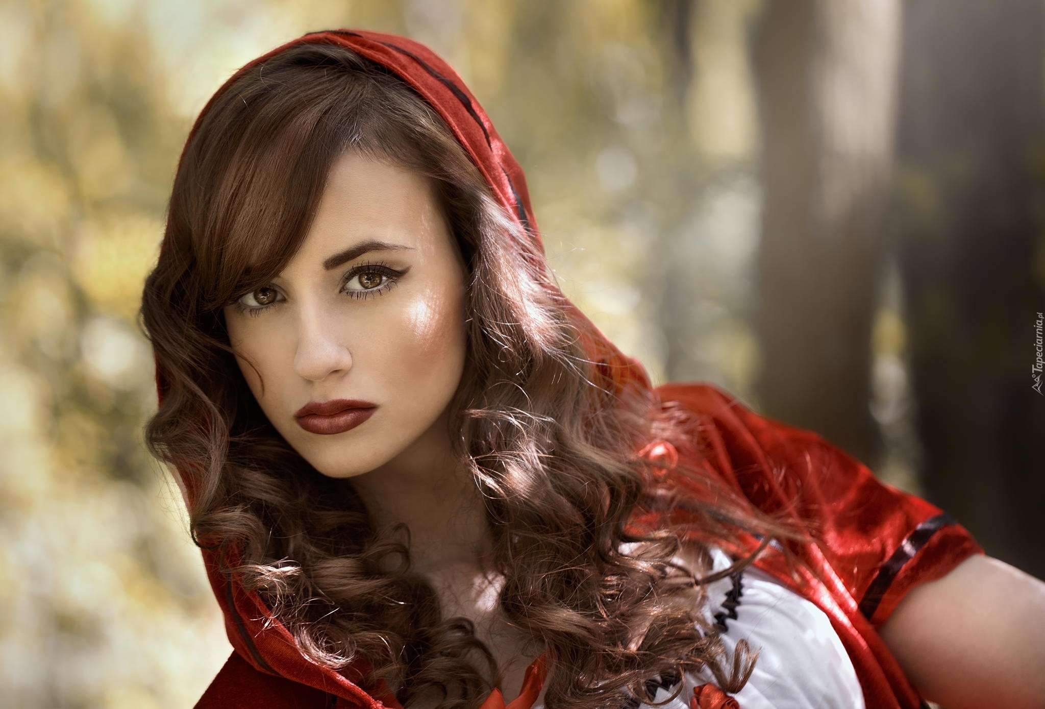 Edytor tapety: Kobieta, Makijaż, Czerwony, Kapturek