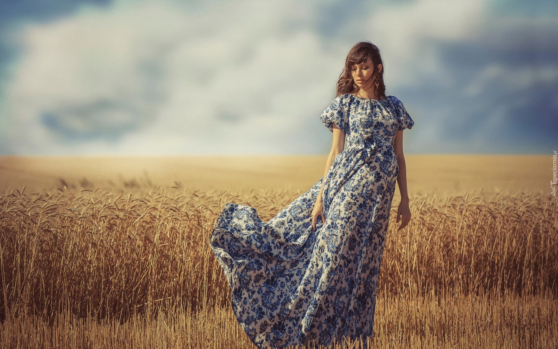 Edytor tapety: Dziewczyna, Pole, Pszenica, Chmury, Lato