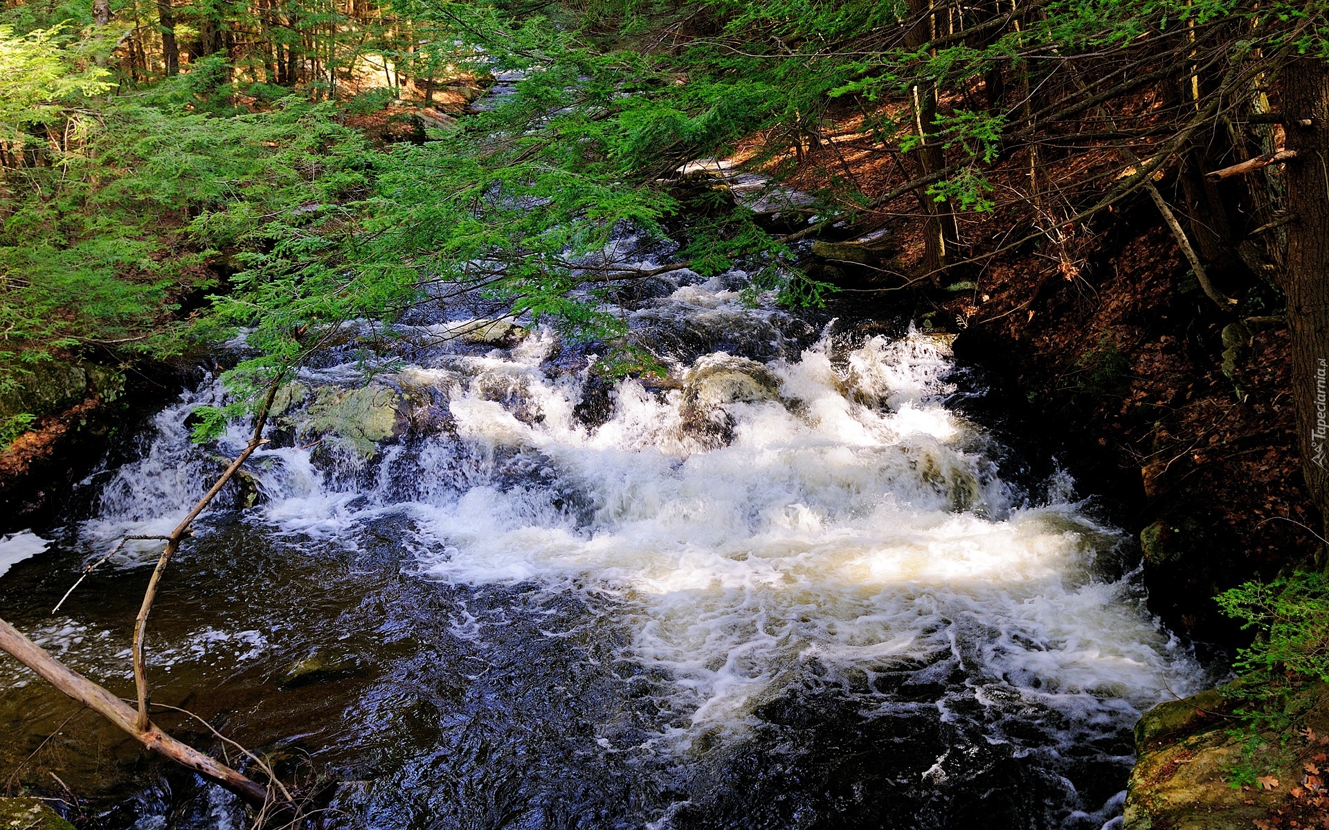 Edytor tapety: Górska, Rzeka, Kamienie, Las, Wiosna