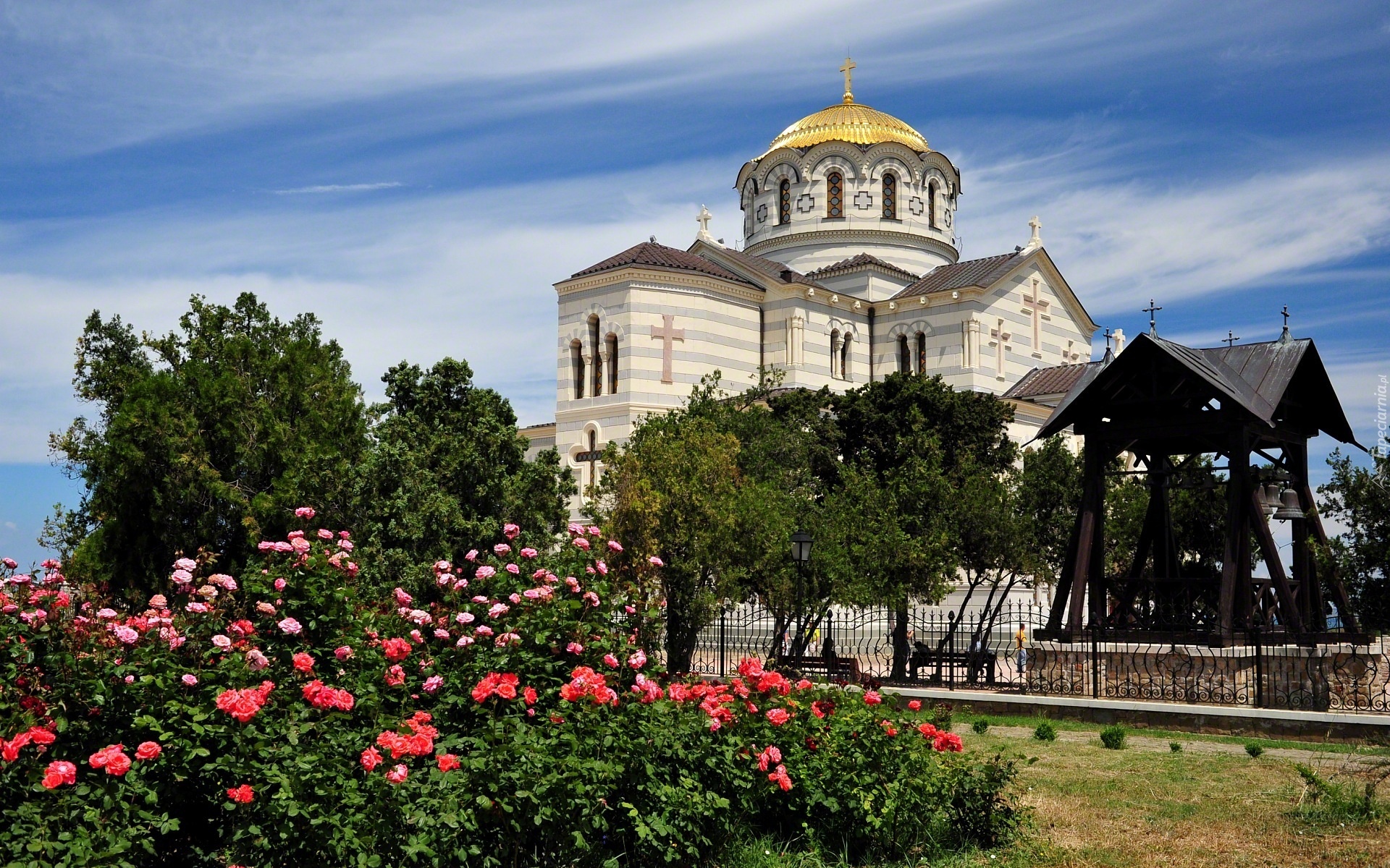 Edytor tapety: Cerkiew, Ogród, Kwiaty, Rosja