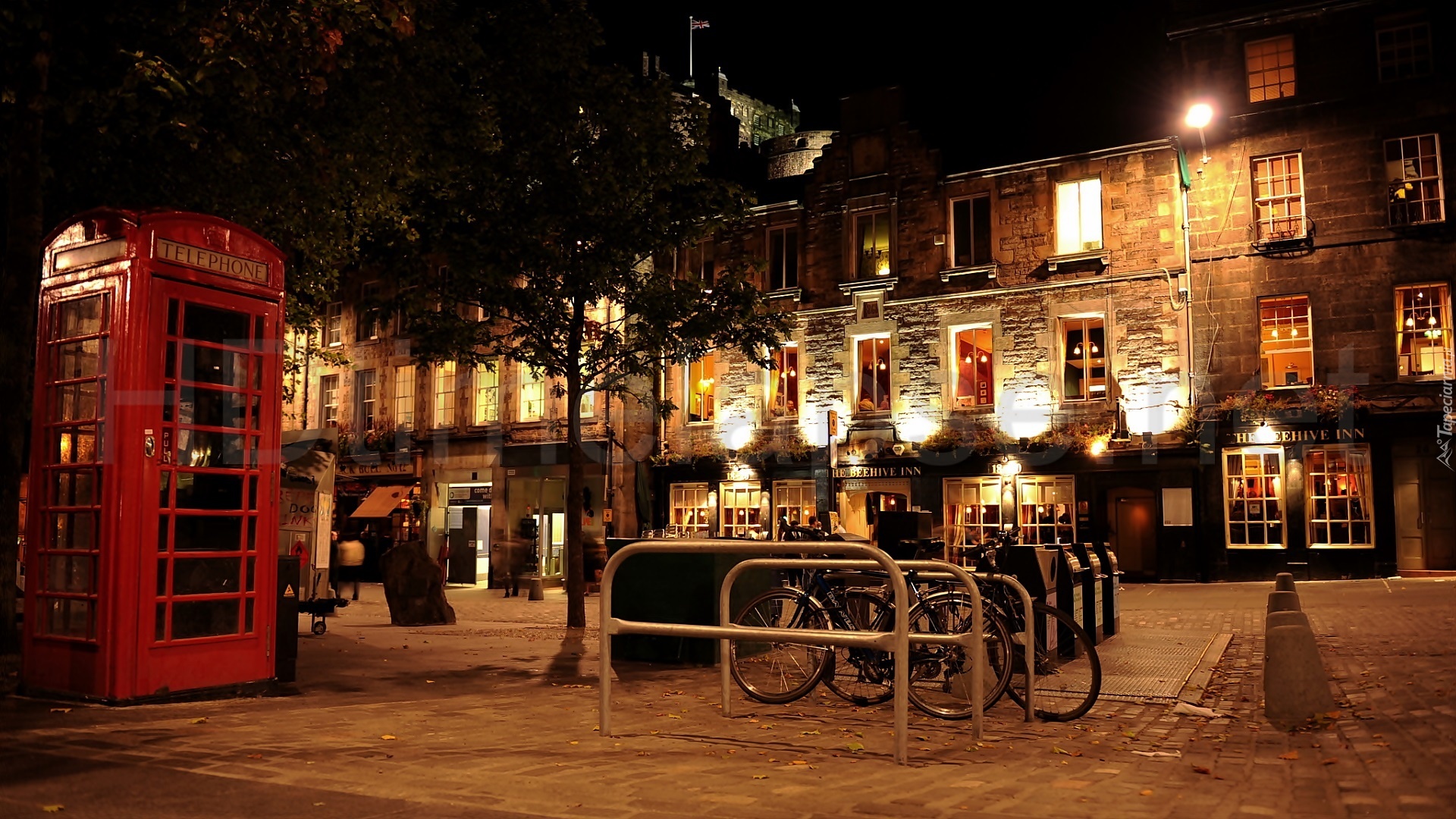 Edytor tapety: Domy, Plac, Rowery, Budka, Telefoniczna, Fragment, Miasta, Nocą