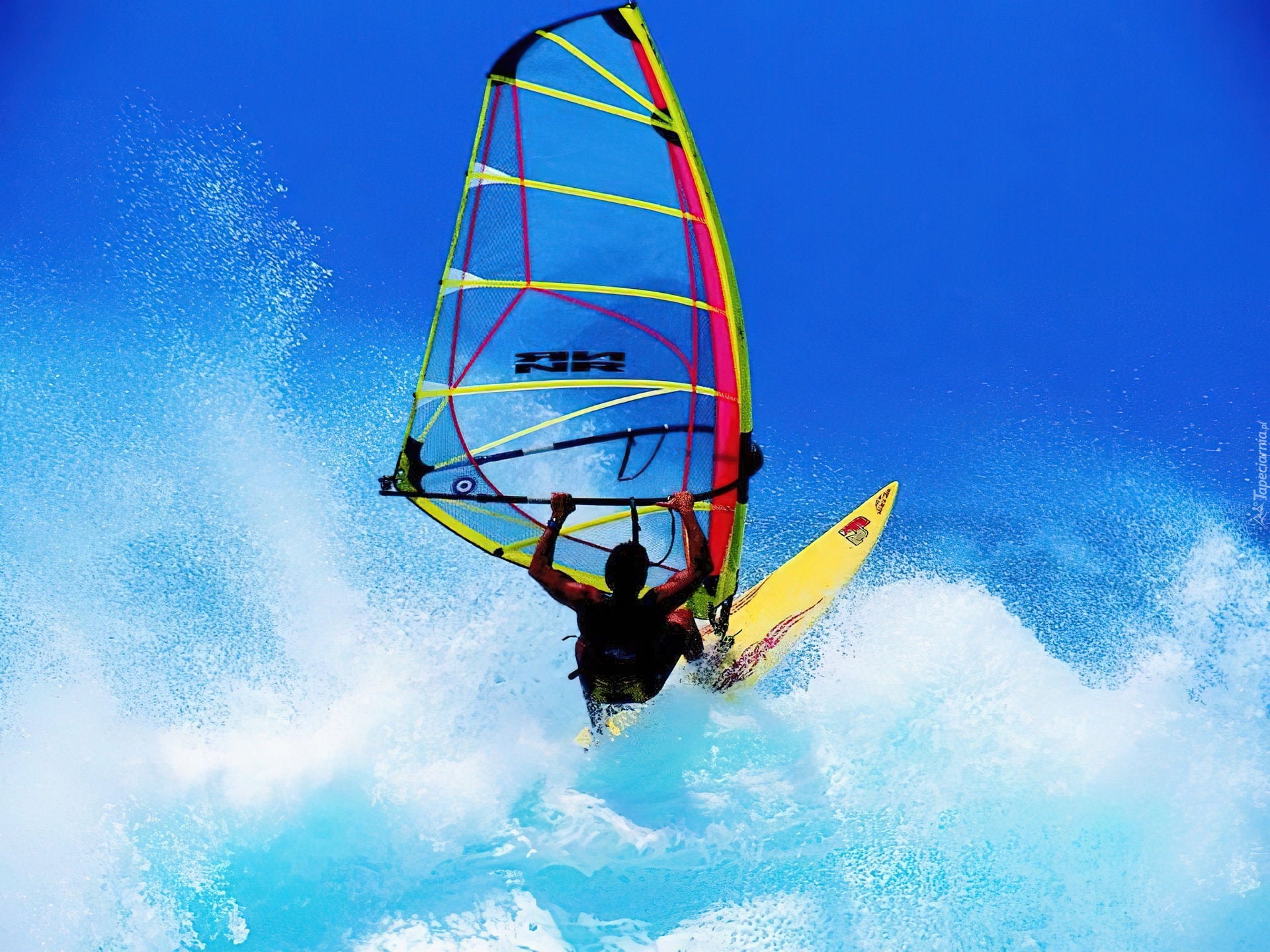 Edytor tapety: Windsurfing,deska, żagiel , morze,fala