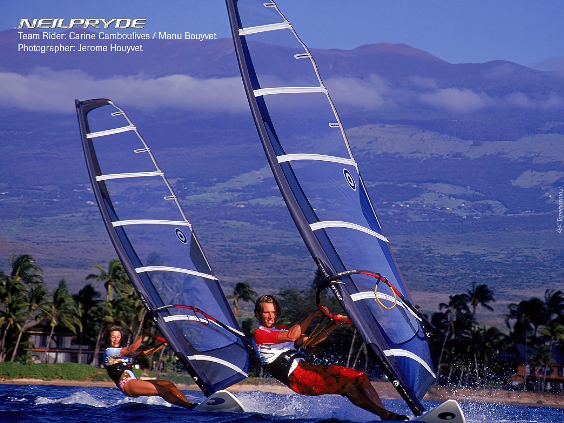 Edytor tapety: Windsurfing, Krajobraz,deska, żagiel , morze