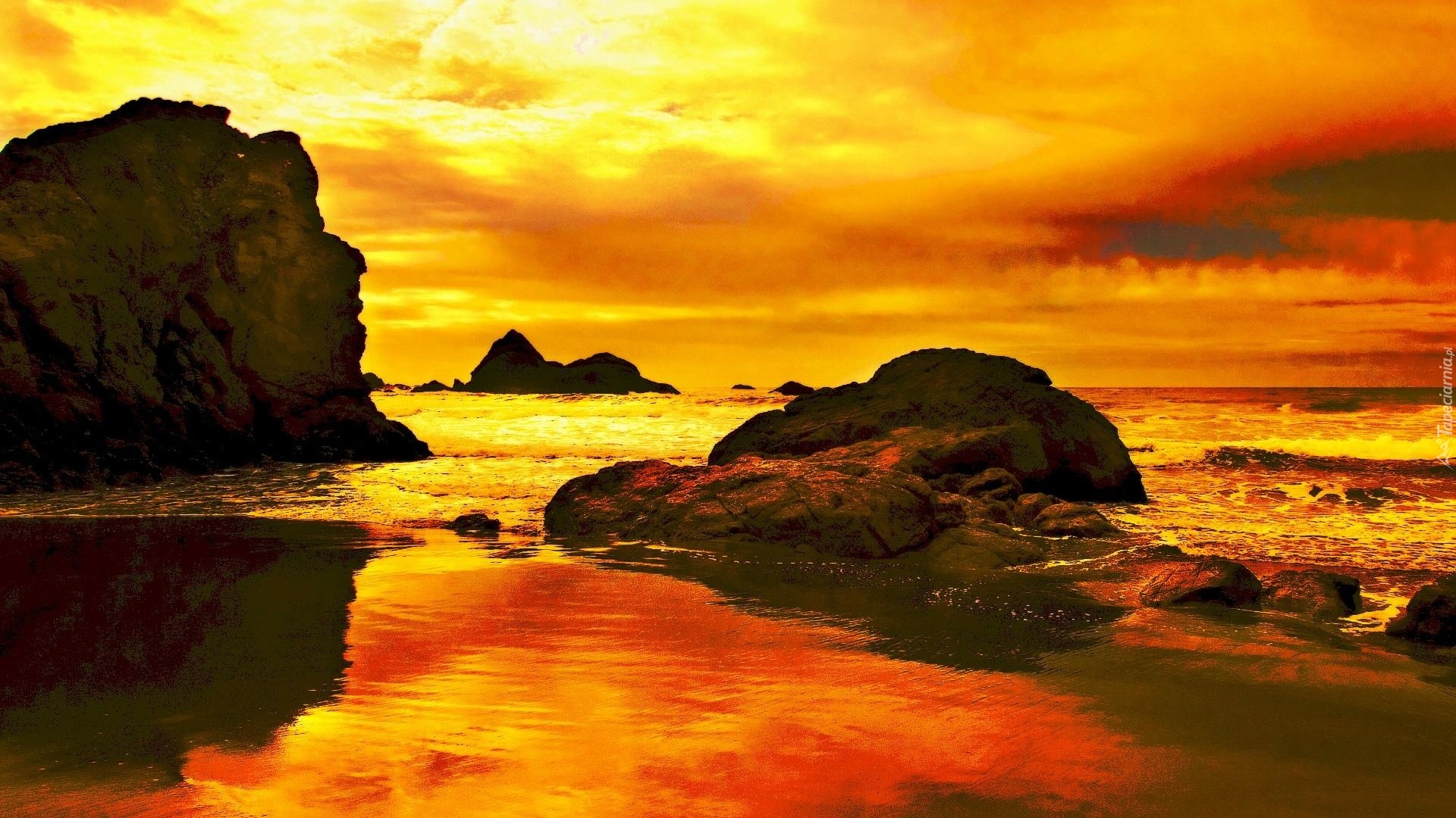 Edytor tapety: Morze, Skały, Zachód Słońca