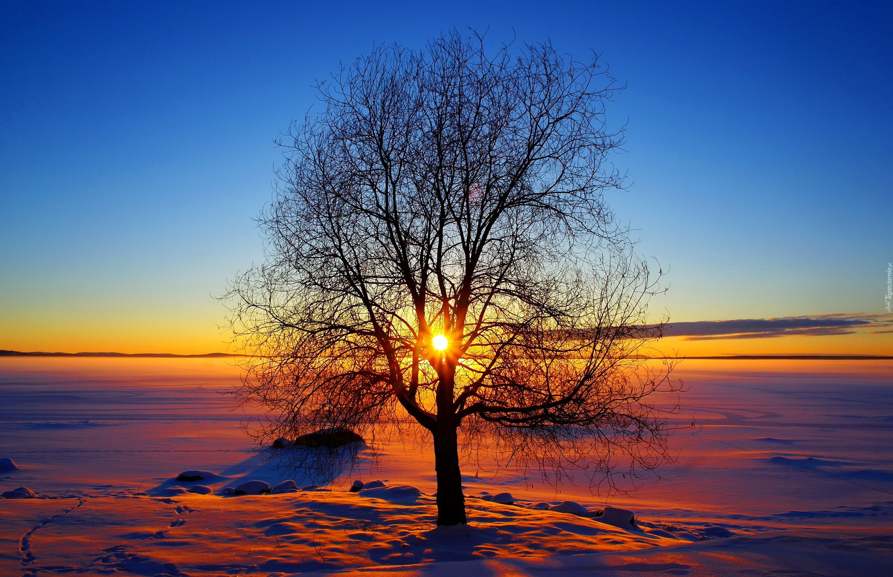 Edytor tapety: Drzewo, Promienie, Słońca Horyzont, Zima