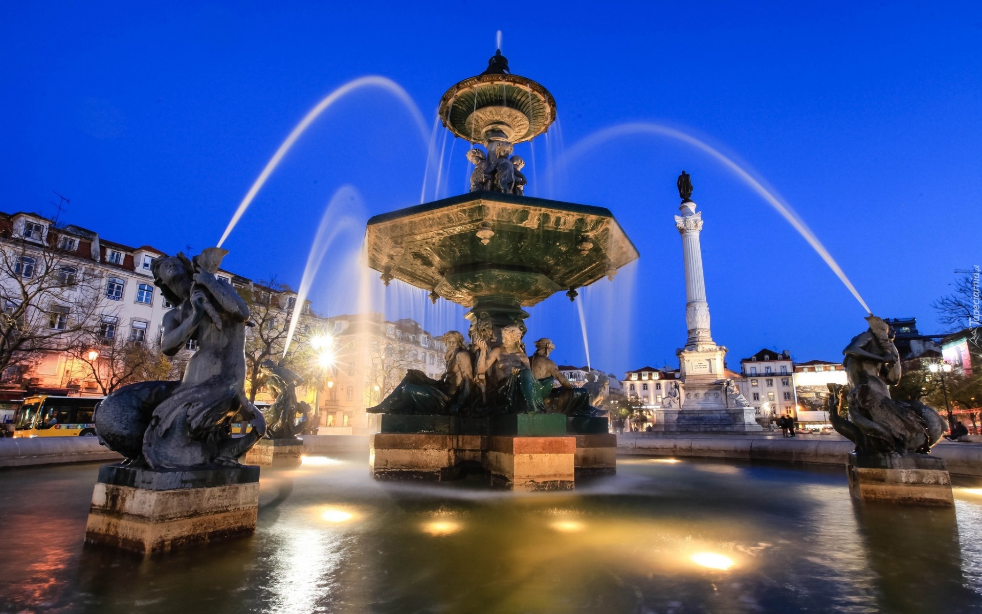 Edytor tapety: Fontanna, Domy, Pomnik, Miasto