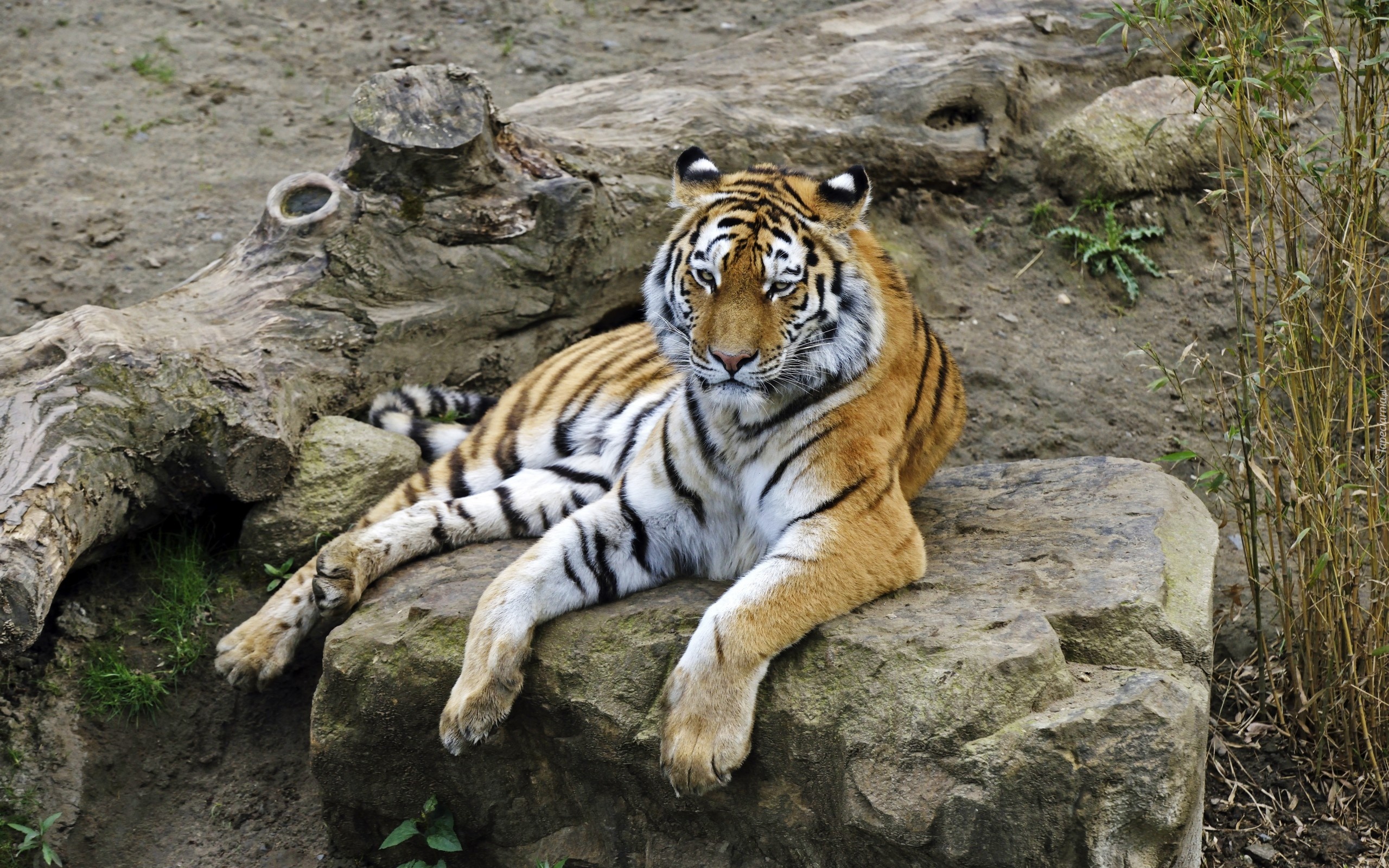 Edytor tapety: Tygrys, Skała, Trawa, Pień