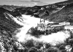 Edytor tapety: Góry, Lasy, Mgła, Katedra, Domy, Covadonga