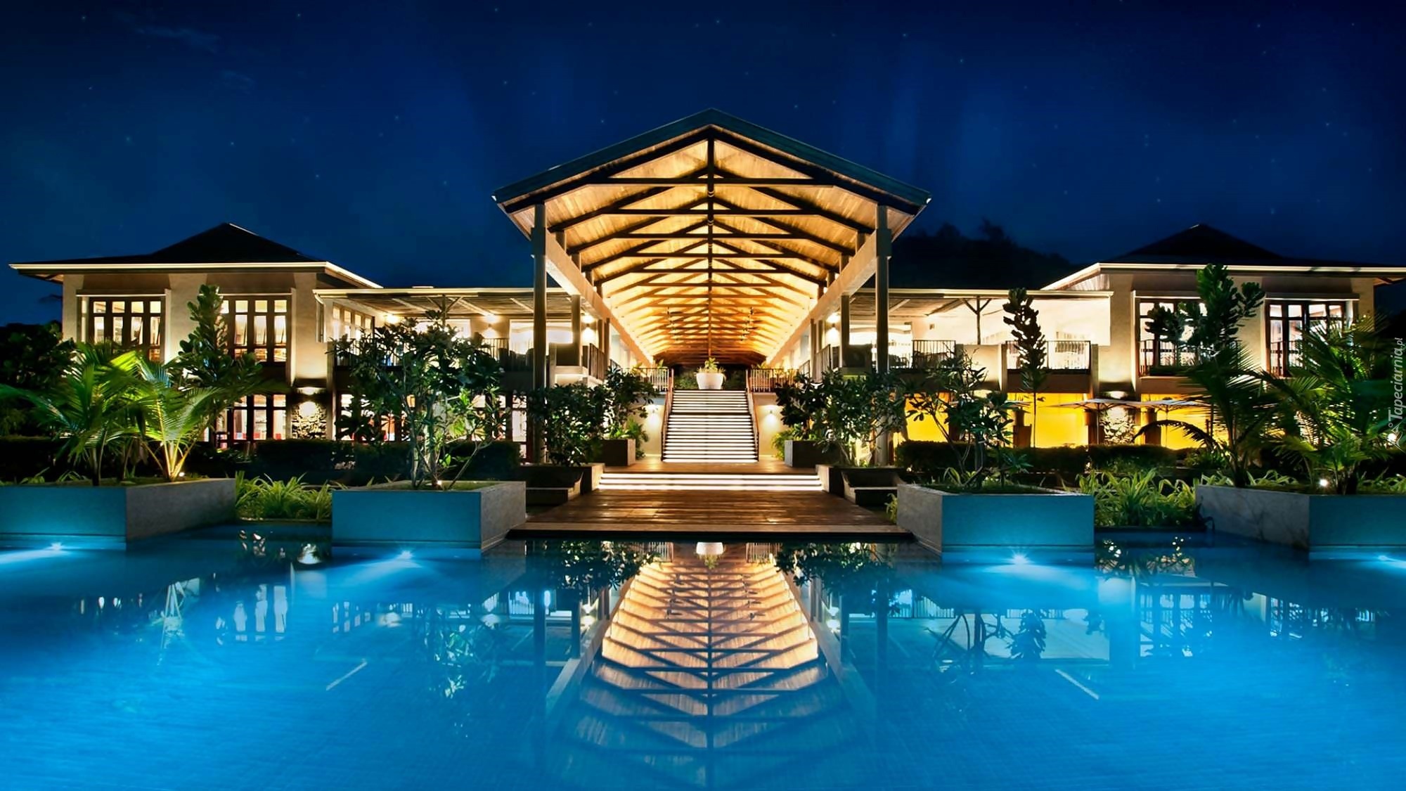 Edytor tapety: Hotel, Basen, Palmy