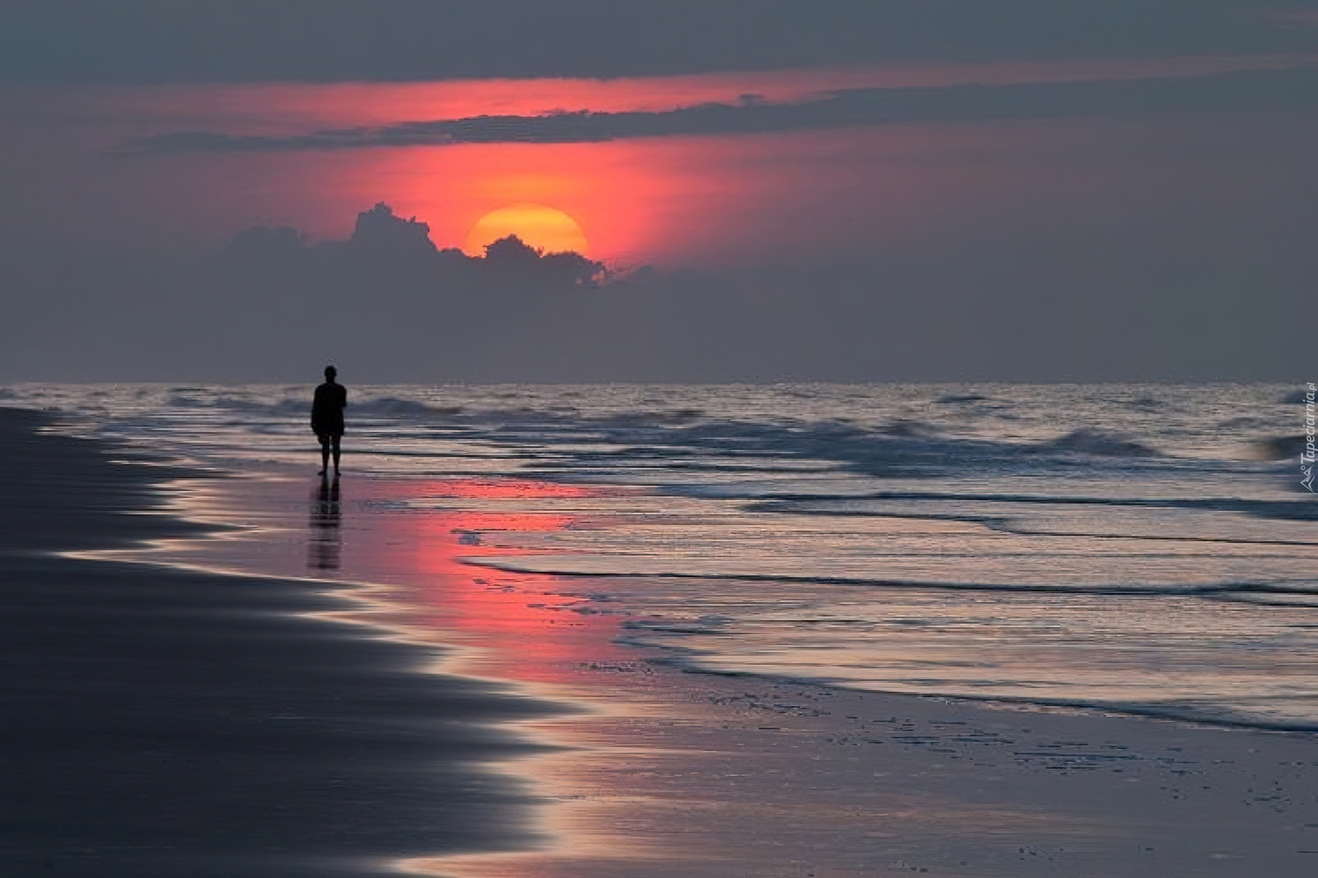 Edytor tapety: Zachód, Słońca, Morze, Postać