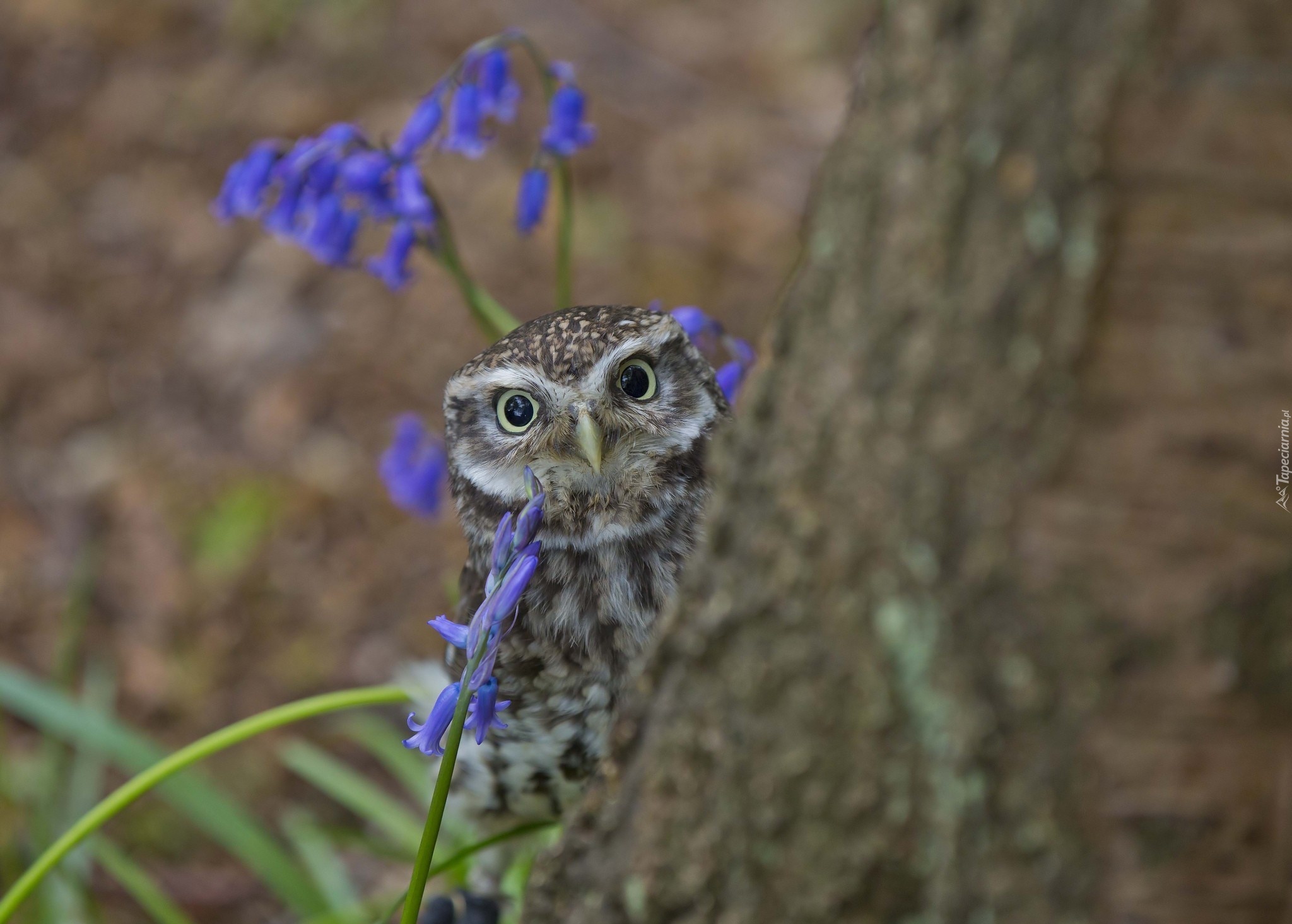 Edytor tapety: Sowa, Pień, Drzewa, Kwiatki