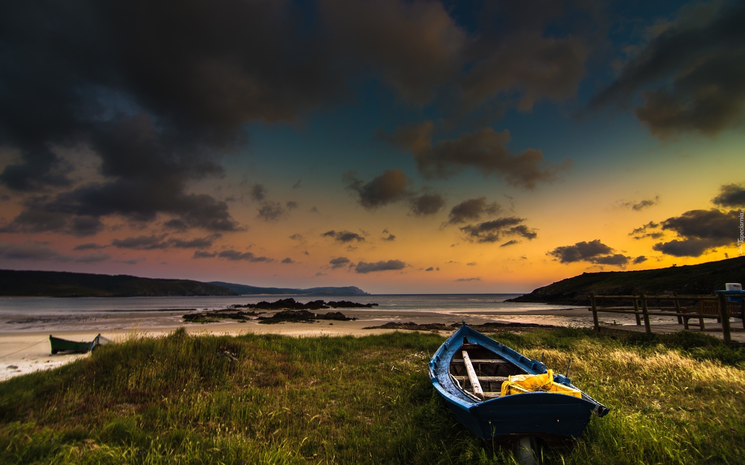 Edytor tapety: Zachód, Słońca, Jezioro, Brzeg, Łódka