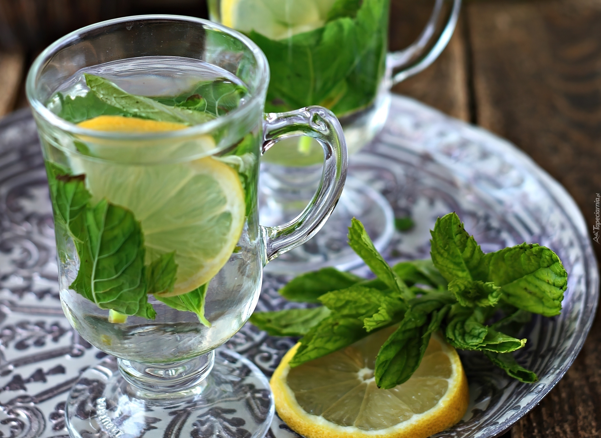 Edytor tapety: Szklanki, Woda, Cytryna, Listki, Mięta
