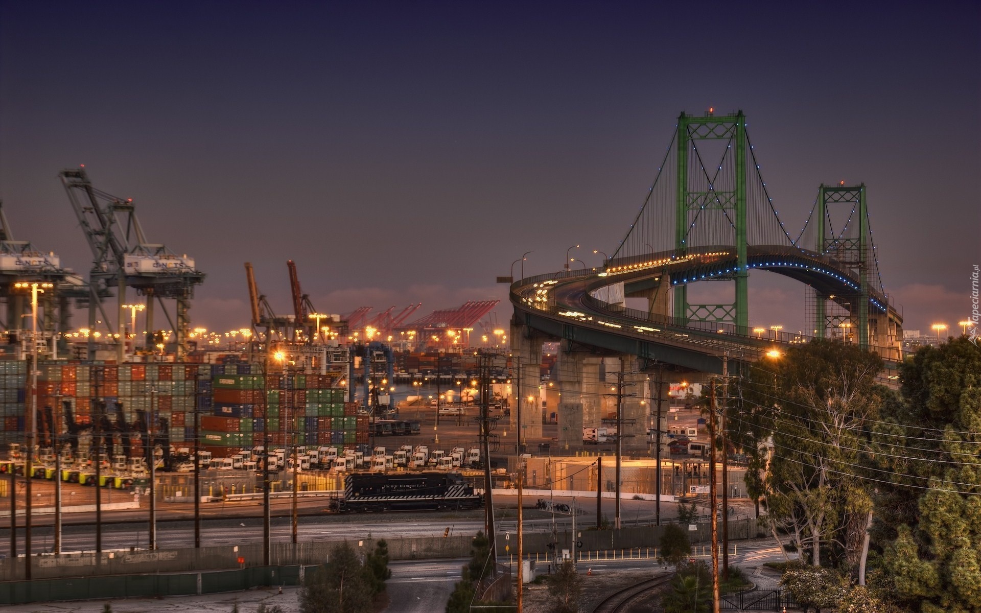 Edytor tapety: Port, Most, Pociąg, Noc